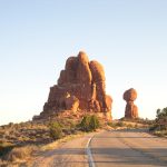 剛走完 Delicate Arch 實在不太有志氣再走完這個步道全程。我們選擇了途中的一個景點,Landscape Arch 拱長 93 公尺,被認為是世上最長的天然石拱。沿途還有 Pine Tree Arch和 Tunnel Arch 等輕鬆的短程道。管理員建議我們走 Windows Section,全程 1 哩約只需 30 分鐘即可完成。此時已是夕陽西下時分,陽光灑落在岩石上,更顯出紅色火焰般閃耀的景象。逛國家公園已有平坦的車道抵達各景點,為什麼還要走步道呢?節錄一段