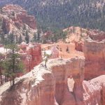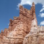 10:30抵布萊斯峽谷.布萊斯峽谷以各式造形的石柱聞名,在主要的步道上都沒有樹蔭,走在步道上要忍受日曬高溫的曝曬。我們從Sunrise Point出發沿Queen Garden步道參觀,預計從Sunset Point出來,沒想到經過一段路程的考驗,在快要開始上坡時卻因步道封閉,必需原路折返,在太陽高溫照射下,實在有點讓人氣餒。不過還好,重走的路,一路上都是布萊斯峽谷的代表作。