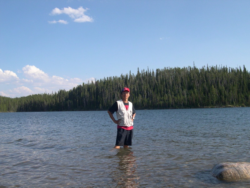 今天起得很早,7:15 就出發了。路程遙遠,15:00 才到 Colter Bay 營地。在進入Jackson 前,公路沿著 Snake River 蜿蜒而行,河谷美極了,好多人在河中泛舟。進入 Jackson 市區,從來沒遇到那種塞車的情況,好像全部的人都擠到這裡來似的。好不容易來到 Jenny Lake 南端的 Moose Visitor Center 詢問 Jenny Lake 的營位。熱門的營位總是特別少,我們來得太晚了,據說想在那裡露營,早上八點前登記才有機會。