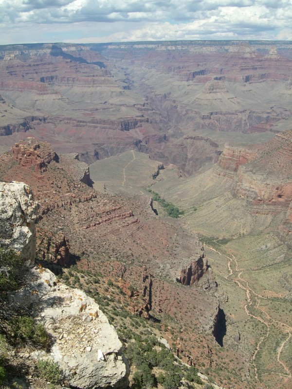Rim Trail是沿著大峽谷的崖岸邊設置,西起Hermit Rest東至Pipe Creek Vista全長11.85哩。走在峽谷的邊緣,眺望那無邊無際的峽谷,讓人有空曠,渺小的感覺,頓時心境平靜了許多。要深切感受峽谷的雄偉壯觀,就一定要多走步道,甚至要走完Bright Angel Trial或South Kaibab Trail才算真正遊完大峽谷,這樣才可以從各種不同的角度欣賞大峽谷的風采。