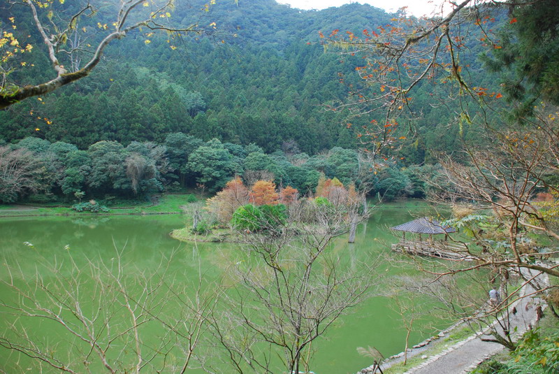 過桃園宜蘭縣界,明池算是最為優美的風景區,抵達時已下午四時,雖不宜停留太久,還是要在明池泮停車賞景。 明池旁吹薩克司風的藝人,正演奏著台灣名曲,一旁草地上一對父子正興高采烈的嬉戲,兩組聲音在山谷中迴盪。父子的聲音遠遠壓過台灣名曲,合成一曲不成調的組曲。可惜,一首經典台灣名曲,與父子親情對話,未能譜成一曲合諧的樂曲。
