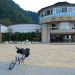 還沒到百韜橋,天色已全暗。從梨山往宜蘭的車輛好多,在黑夜中,一下子還不太能適應那從後方急駛而過小客車,小心地儘量靠邊騎。英士的芃芃(ㄆㄥˊ)溫泉及其上游的松蘿湖,嚮往已久,至今仍未能成行,今天還是過而不入。六點,預計的住宿點英仕山莊到了,價格在預算範圍內,決定在此過夜。
