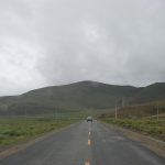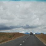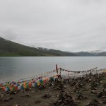 今天一早離開拉薩,將真正進入本次旅行的重頭戲:朝聖(遠眺聖母峰)、轉山(轉岡仁波齊神山)、進入人煙罕至的阿里地區。早上出發還是下著毛毛雨,這場雨從抵達拉薩以來就斷斷續續的下著,抬頭望向天空, 烏雲密佈著整個天空,希望向西行後能有一大片藍天。三名團員分配一輛四輪傳動的休旅車,放進行李車箱內空間還是很寬敞,這種車才能勝任進出阿里地區。進入山區後公路蜿蜒而上,越過崗巴拉山山口,向下遠眺就是羊卓雍措。山上有一大型的停車場,遊客大都會在這裡停車,俯瞰聖潔的羊湖。我們的車隊沒有停車,仍續往前行 ,理由是什麼不得而知。