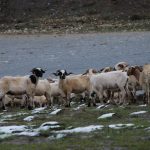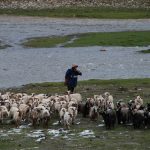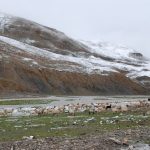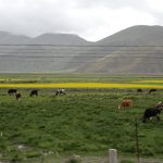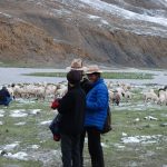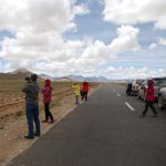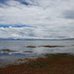回頭走昨天走過長長一段顛簸的泥土路,回到老定日,剛好是午餐時間。下午將前往希夏邦馬峰自然保護區,希夏邦馬山海拔8027M,是世界上十四座海拔八千公尺以上的第十四高峰。由於不是晴空萬里的日子,我們也只是在某一處的路邊遠眺,當然也沒有看到希夏邦馬山的真面目。保護區內有一高原湖泊佩枯措,這是一星期以來,看到最多藍天的一天。真正看到了西藏的風光,藍天、白雲、雪山、湖泊,其實再加上草原、牛羊才更完整。