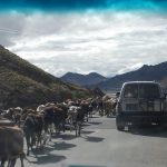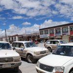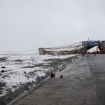 西藏地區每個縣城距離都非常遙遠,三餐一定無法照平常時間用餐。離開羊湖,途經紅河谷電影拍攝地的卡若拉冰川車速只減速通過,沒有停留 ,說是避免地免地球暖化,冰河退縮。好偉大的想法,不過我還是不懂,以慢車、慢行代替停車相差多少?此時山頭上為烏雲籠罩著,從車窗內溜灠也已足夠。車行至斯米拉山口,是該上洗手間的時候了,偏遠地區廁所是不可能有的設施,各憑本事自行解決,最難為的是眾小姐女士們。