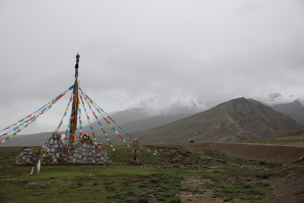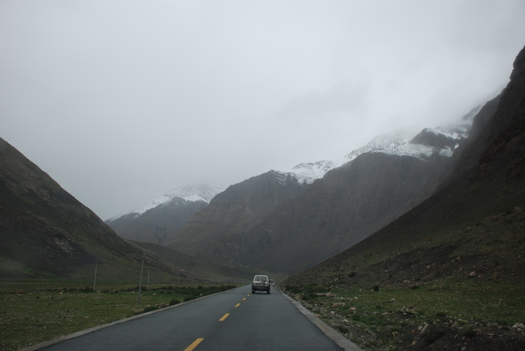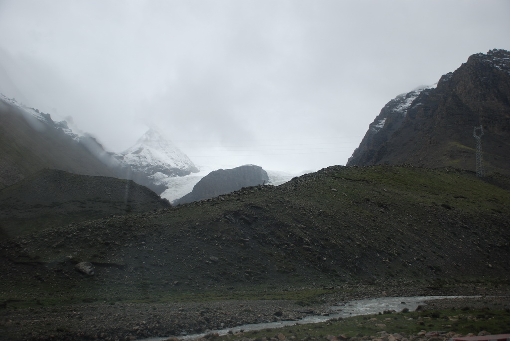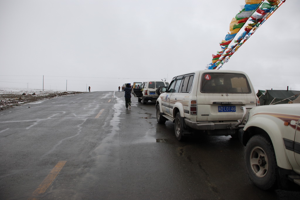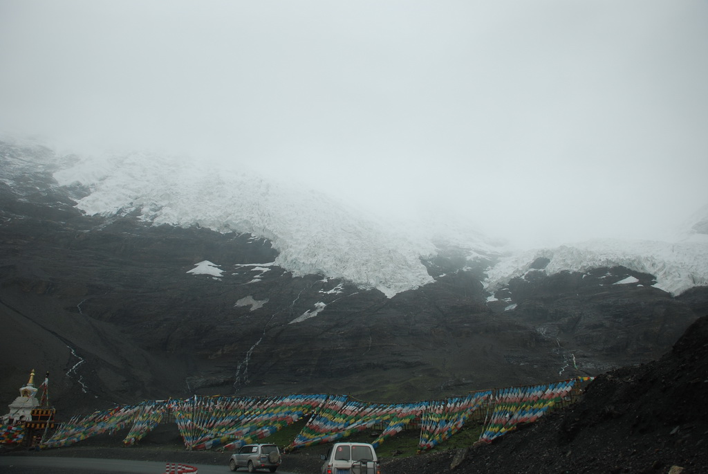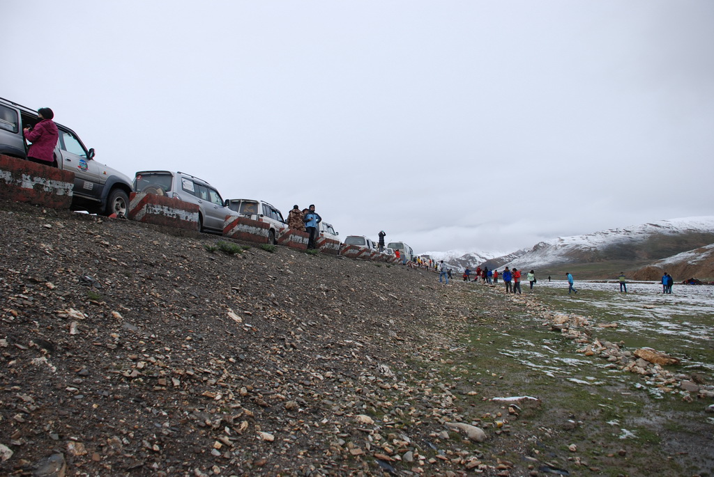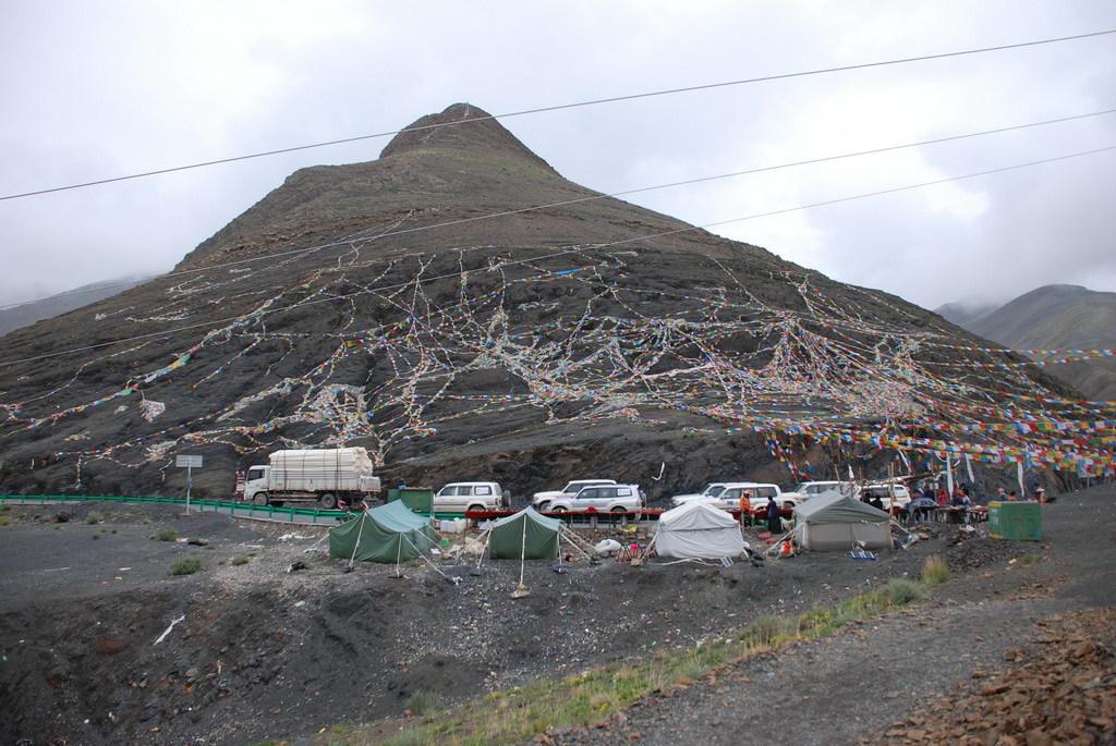 西藏地區每個縣城距離都非常遙遠,三餐一定無法照平常時間用餐。離開羊湖,途經紅河谷電影拍攝地的卡若拉冰川車速只減速通過,沒有停留 ,說是避免地免地球暖化,冰河退縮。好偉大的想法,不過我還是不懂,以慢車、慢行代替停車相差多少?此時山頭上為烏雲籠罩著,從車窗內溜灠也已足夠。車行至斯米拉山口,是該上洗手間的時候了,偏遠地區廁所是不可能有的設施,各憑本事自行解決,最難為的是眾小姐女士們。