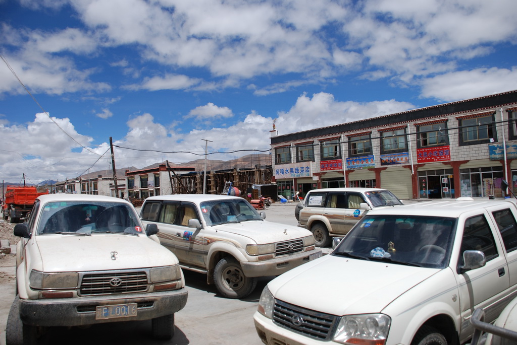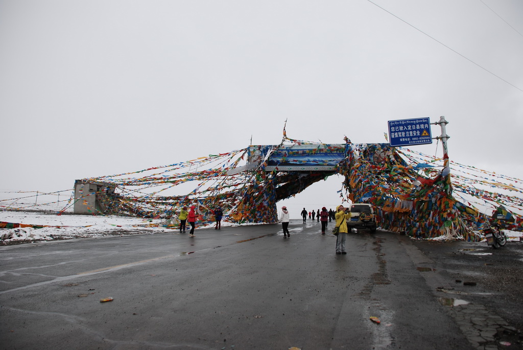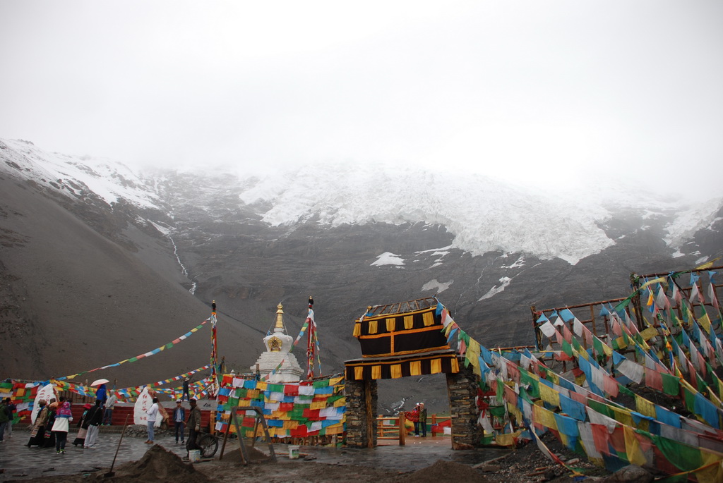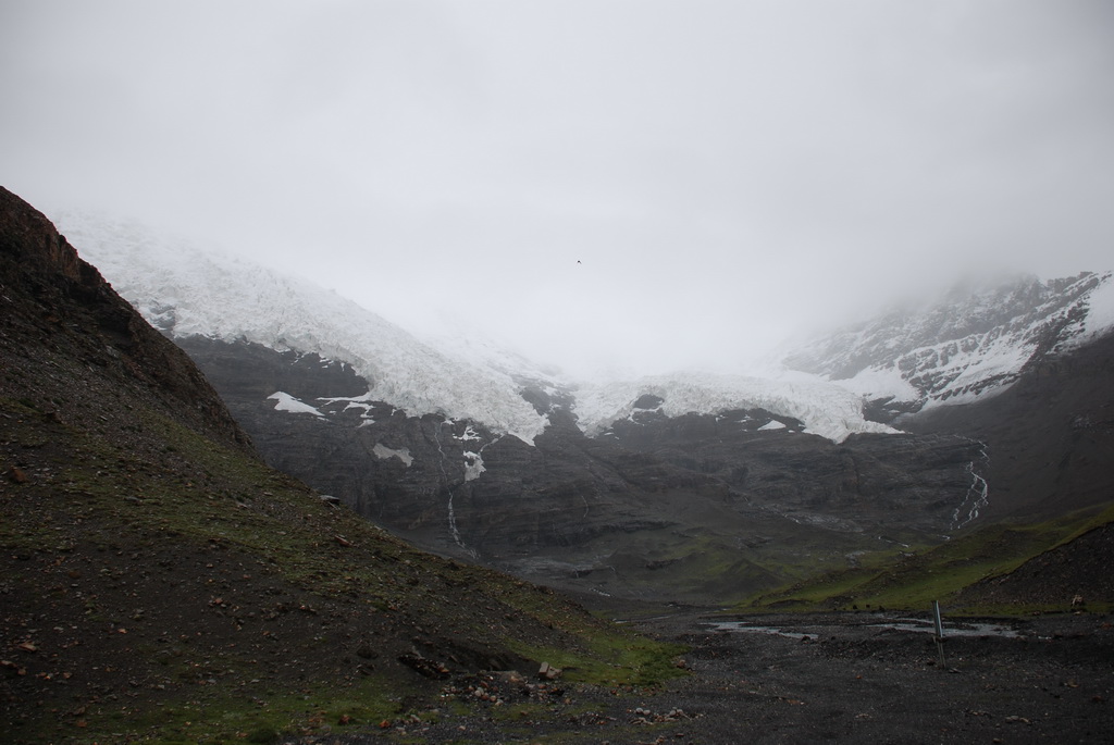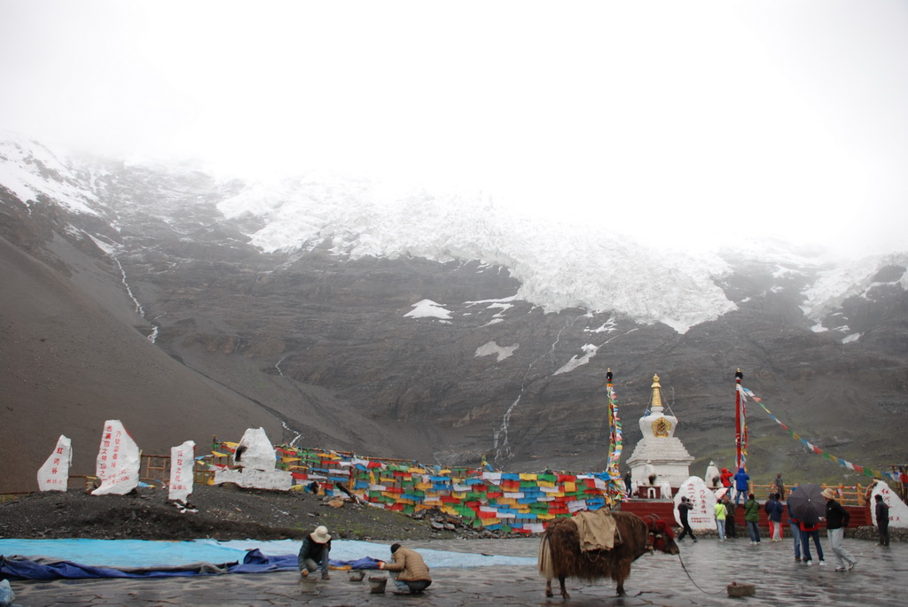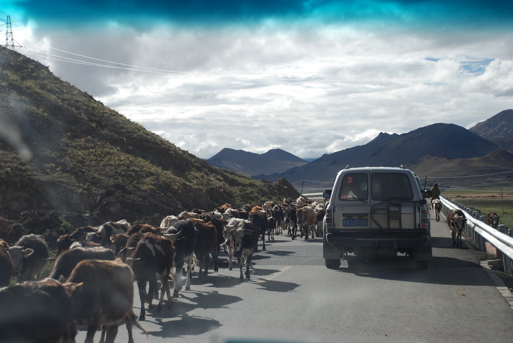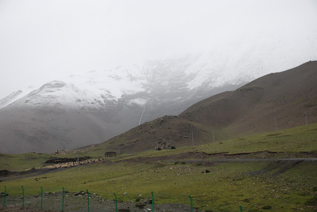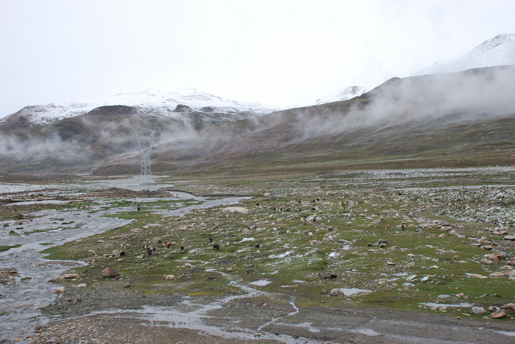西藏地區每個縣城距離都非常遙遠,三餐一定無法照平常時間用餐。離開羊湖,途經紅河谷電影拍攝地的卡若拉冰川車速只減速通過,沒有停留 ,說是避免地免地球暖化,冰河退縮。好偉大的想法,不過我還是不懂,以慢車、慢行代替停車相差多少?此時山頭上為烏雲籠罩著,從車窗內溜灠也已足夠。車行至斯米拉山口,是該上洗手間的時候了,偏遠地區廁所是不可能有的設施,各憑本事自行解決,最難為的是眾小姐女士們。