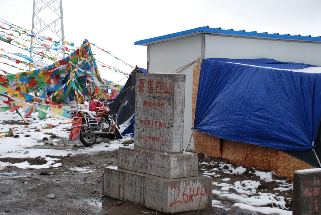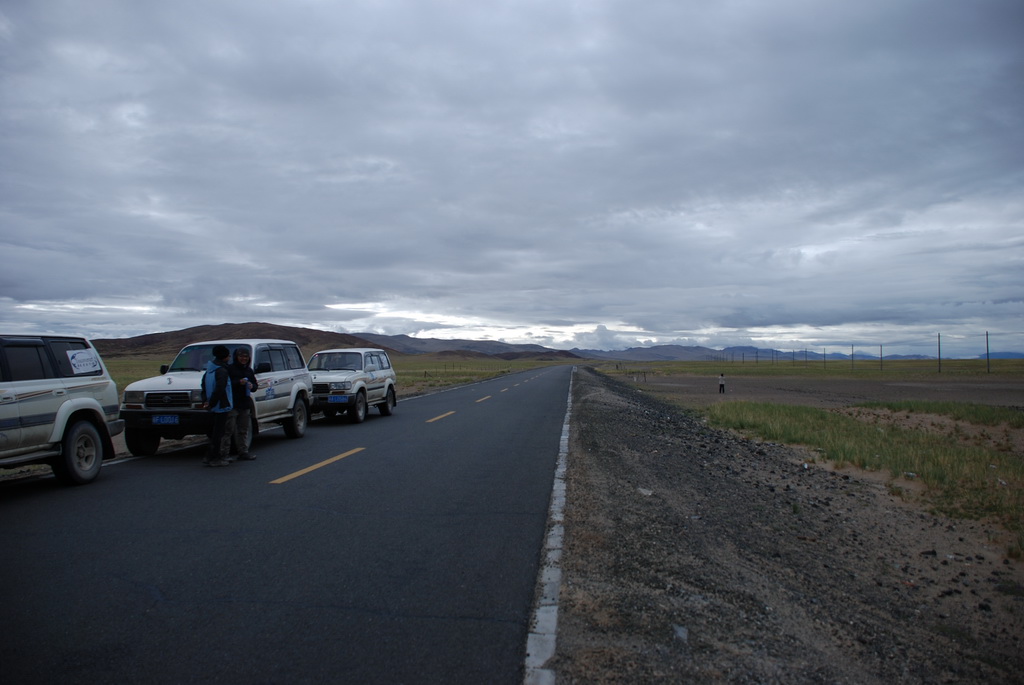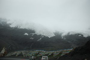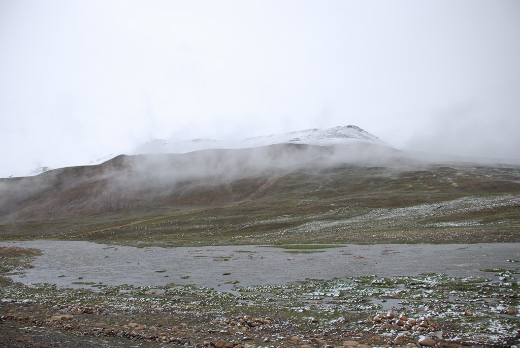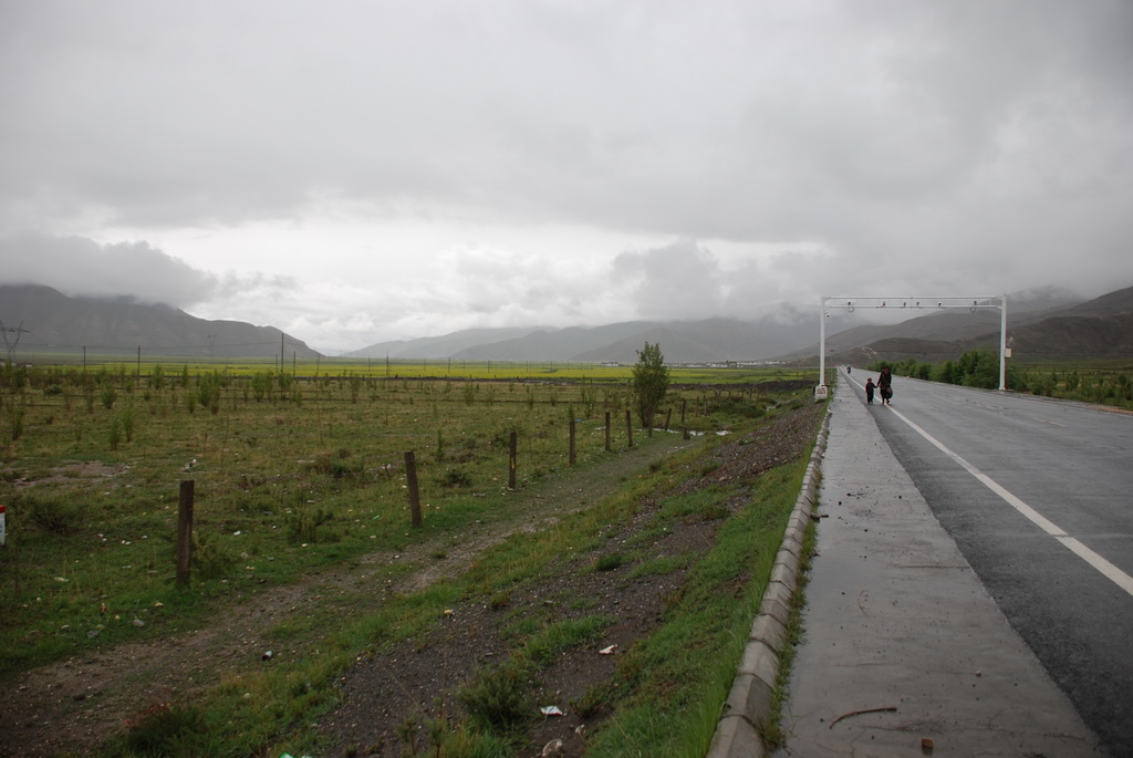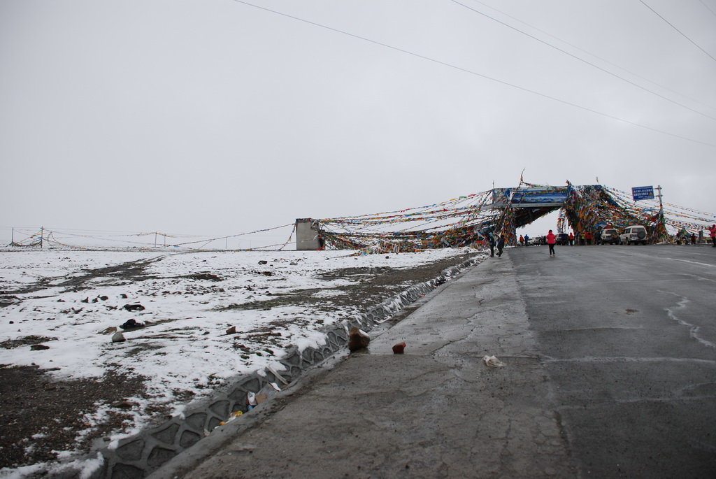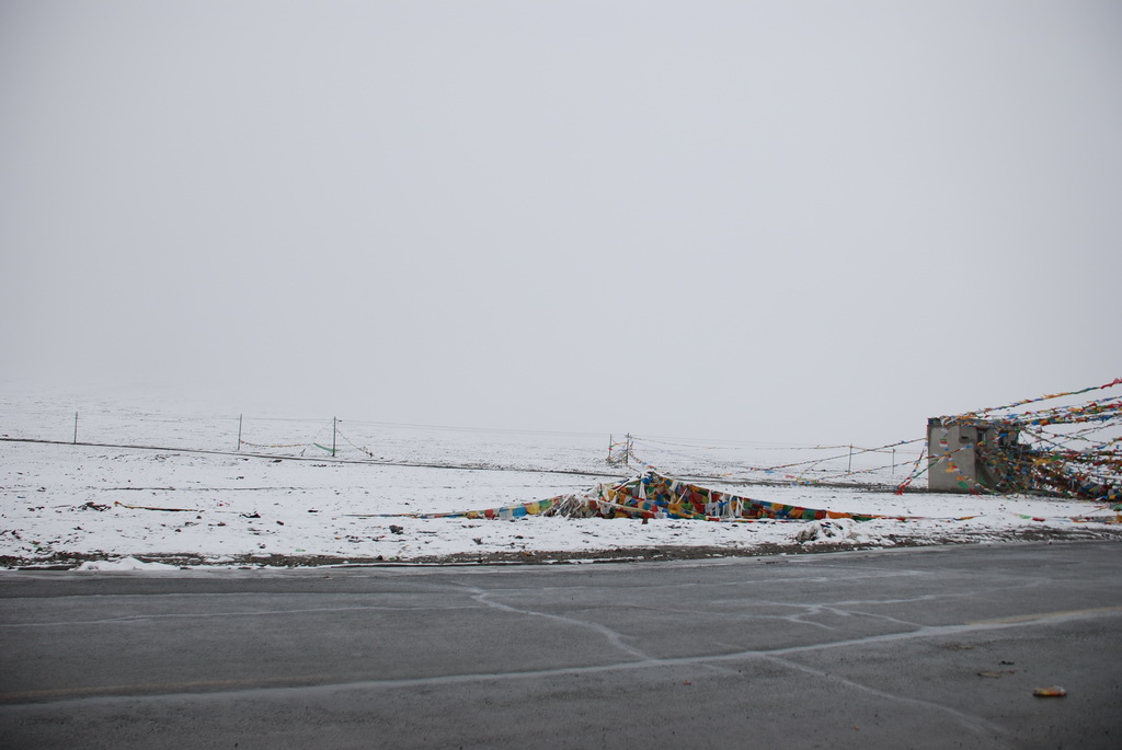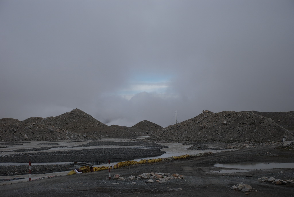 西藏地區每個縣城距離都非常遙遠,三餐一定無法照平常時間用餐。離開羊湖,途經紅河谷電影拍攝地的卡若拉冰川車速只減速通過,沒有停留 ,說是避免地免地球暖化,冰河退縮。好偉大的想法,不過我還是不懂,以慢車、慢行代替停車相差多少?此時山頭上為烏雲籠罩著,從車窗內溜灠也已足夠。車行至斯米拉山口,是該上洗手間的時候了,偏遠地區廁所是不可能有的設施,各憑本事自行解決,最難為的是眾小姐女士們。