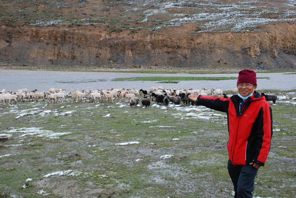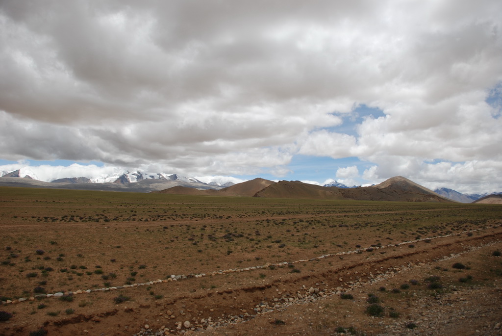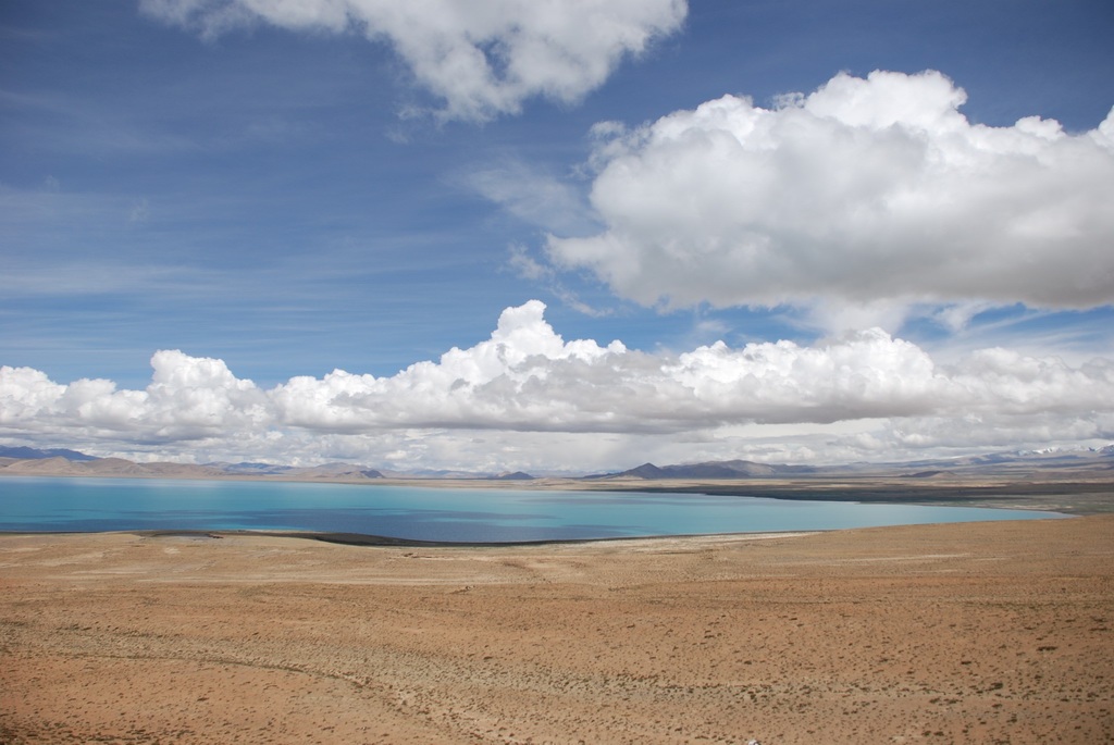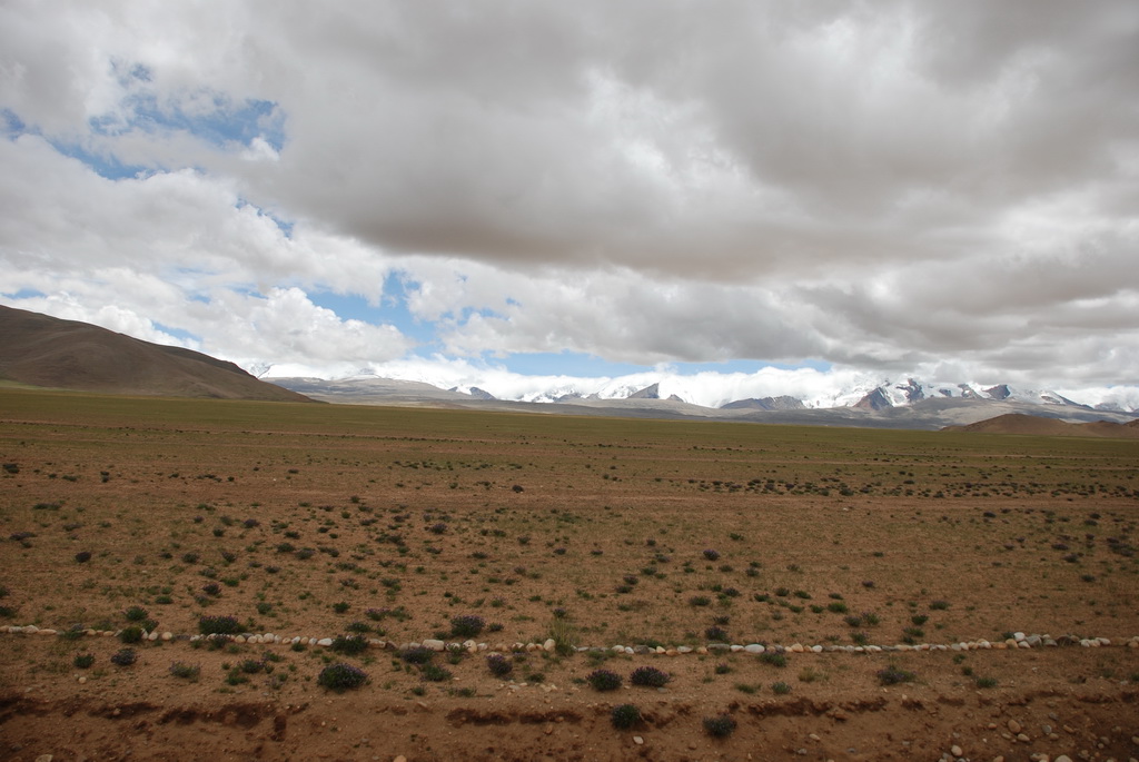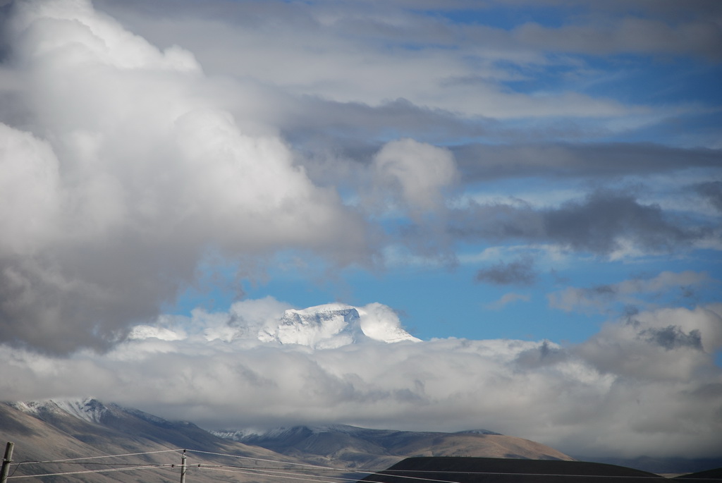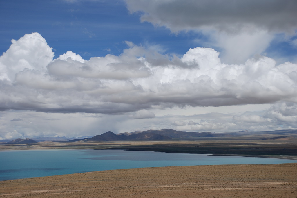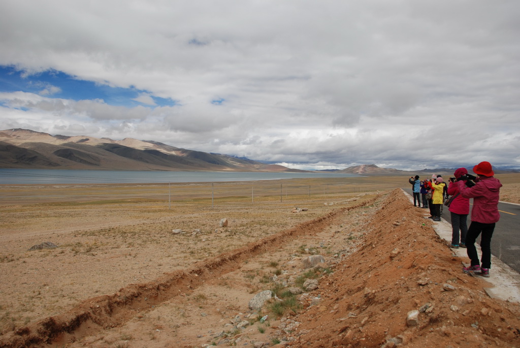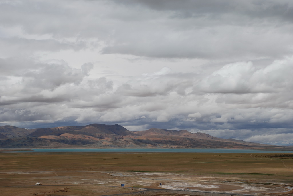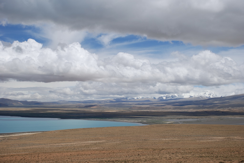 回頭走昨天走過長長一段顛簸的泥土路,回到老定日,剛好是午餐時間。下午將前往希夏邦馬峰自然保護區,希夏邦馬山海拔8027M,是世界上十四座海拔八千公尺以上的第十四高峰。由於不是晴空萬里的日子,我們也只是在某一處的路邊遠眺,當然也沒有看到希夏邦馬山的真面目。保護區內有一高原湖泊佩枯措,這是一星期以來,看到最多藍天的一天。真正看到了西藏的風光,藍天、白雲、雪山、湖泊,其實再加上草原、牛羊才更完整。