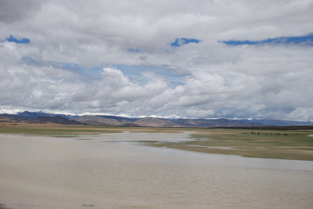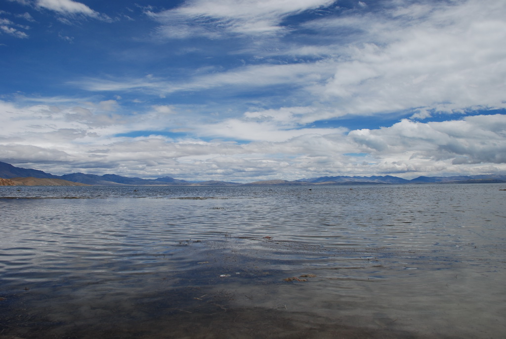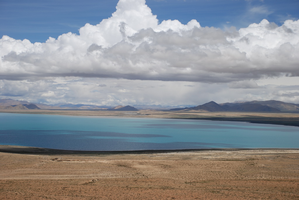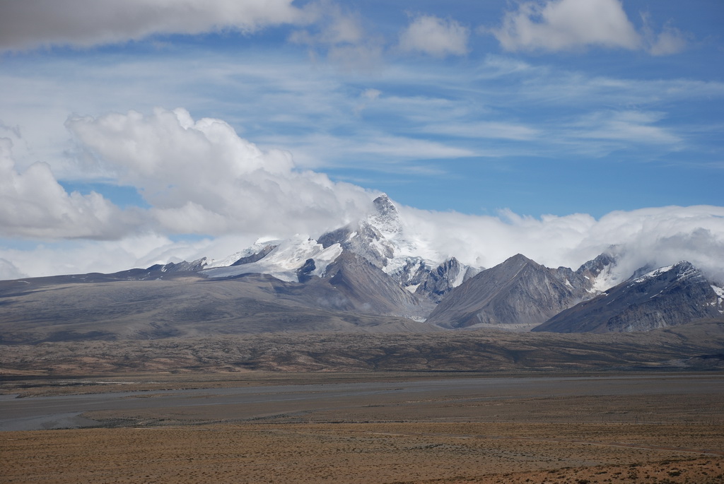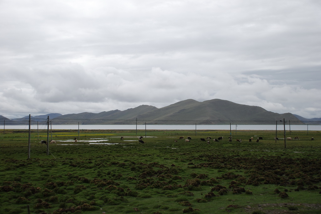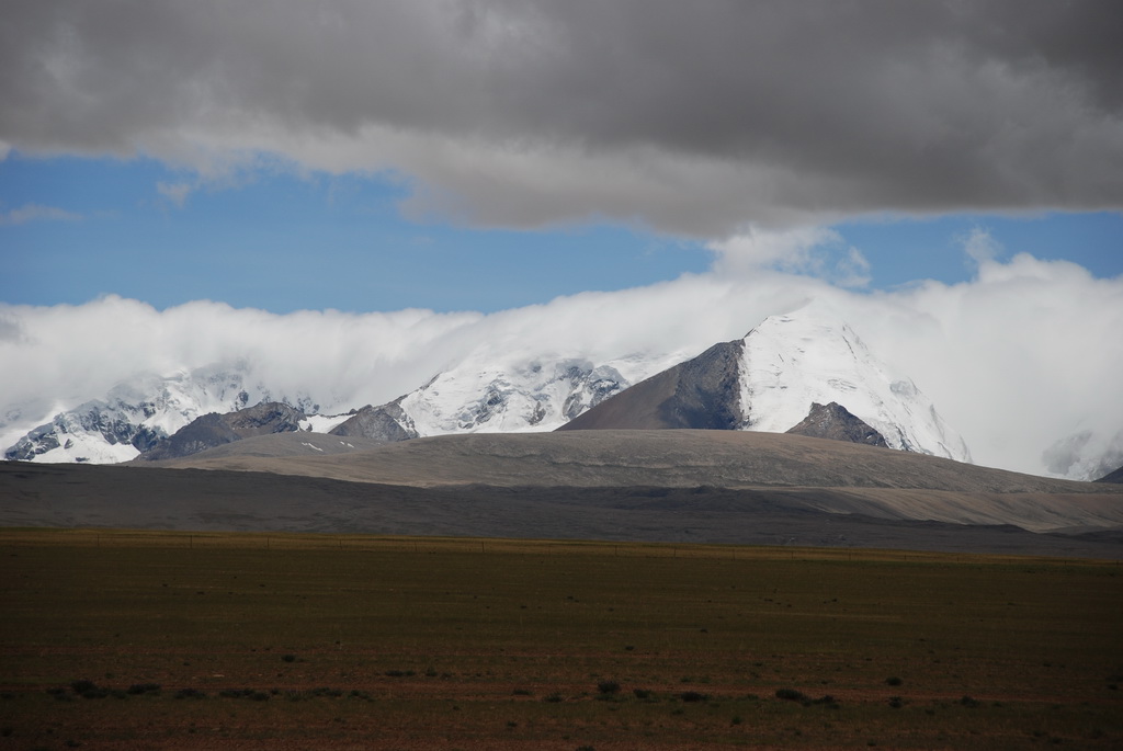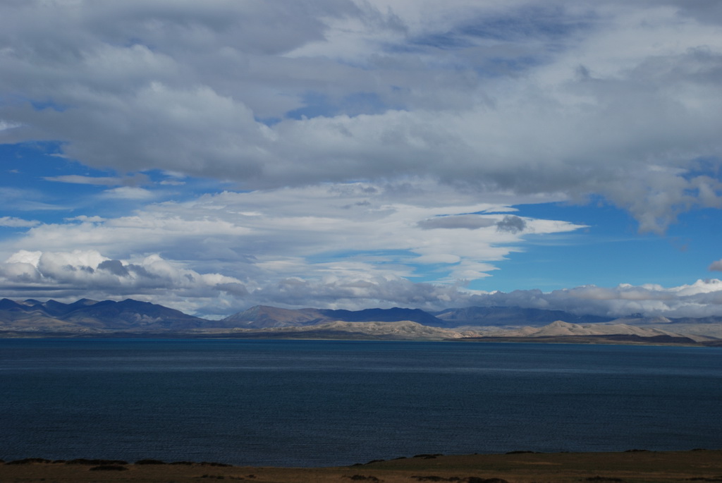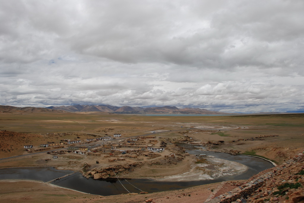 回頭走昨天走過長長一段顛簸的泥土路,回到老定日,剛好是午餐時間。下午將前往希夏邦馬峰自然保護區,希夏邦馬山海拔8027M,是世界上十四座海拔八千公尺以上的第十四高峰。由於不是晴空萬里的日子,我們也只是在某一處的路邊遠眺,當然也沒有看到希夏邦馬山的真面目。保護區內有一高原湖泊佩枯措,這是一星期以來,看到最多藍天的一天。真正看到了西藏的風光,藍天、白雲、雪山、湖泊,其實再加上草原、牛羊才更完整。