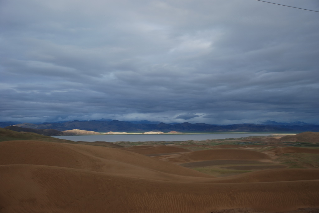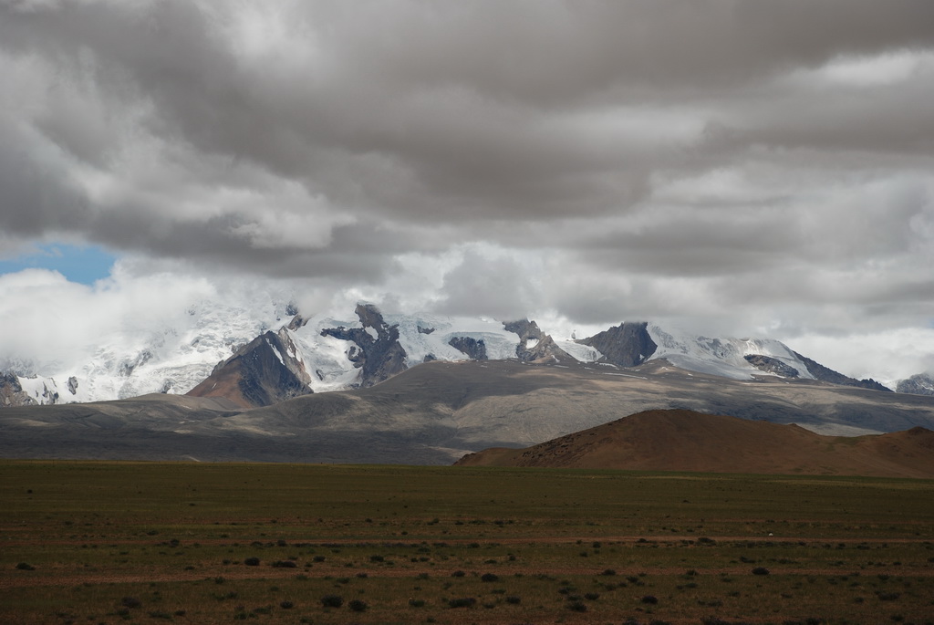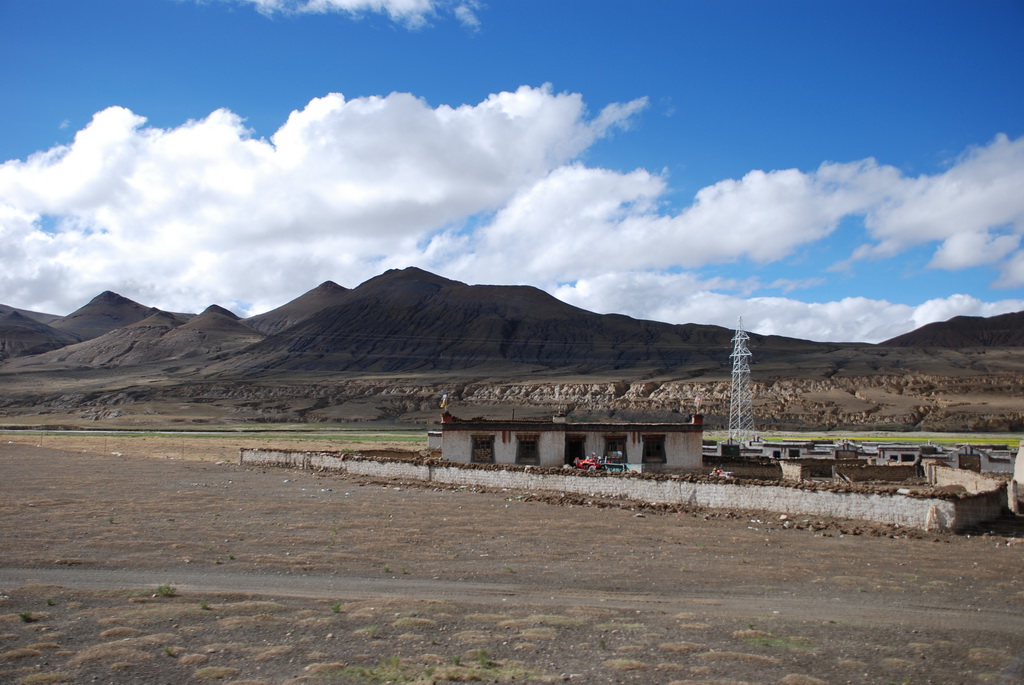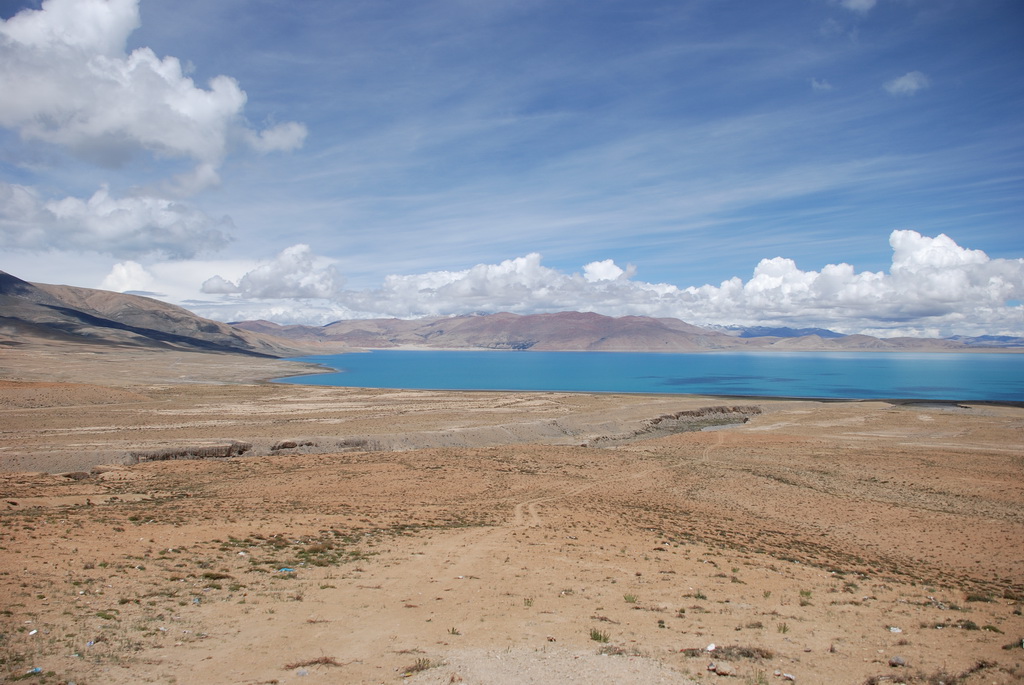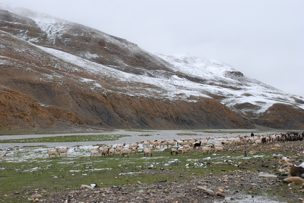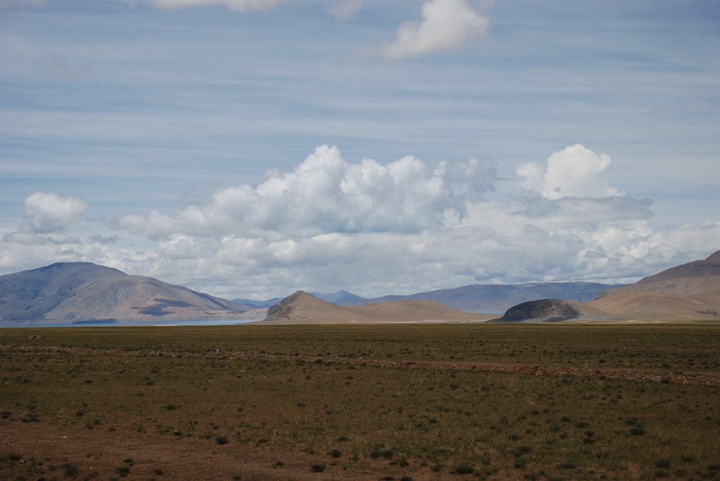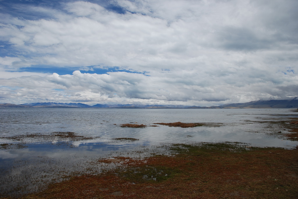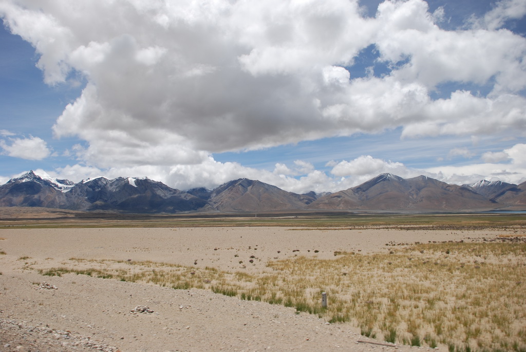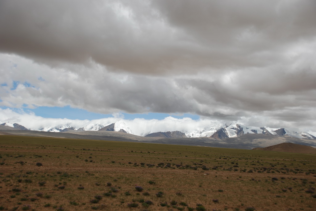 回頭走昨天走過長長一段顛簸的泥土路,回到老定日,剛好是午餐時間。下午將前往希夏邦馬峰自然保護區,希夏邦馬山海拔8027M,是世界上十四座海拔八千公尺以上的第十四高峰。由於不是晴空萬里的日子,我們也只是在某一處的路邊遠眺,當然也沒有看到希夏邦馬山的真面目。保護區內有一高原湖泊佩枯措,這是一星期以來,看到最多藍天的一天。真正看到了西藏的風光,藍天、白雲、雪山、湖泊,其實再加上草原、牛羊才更完整。
