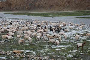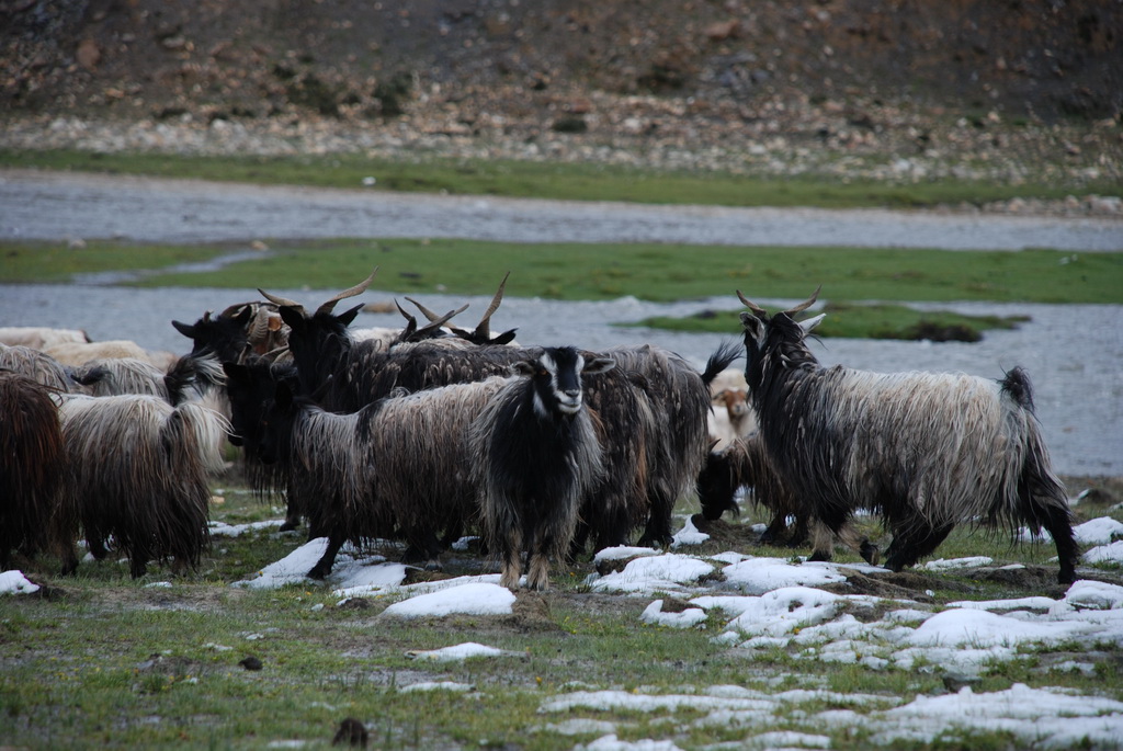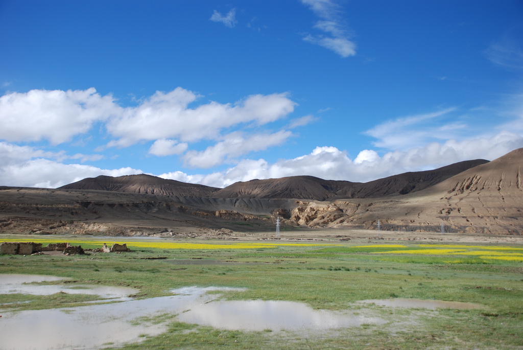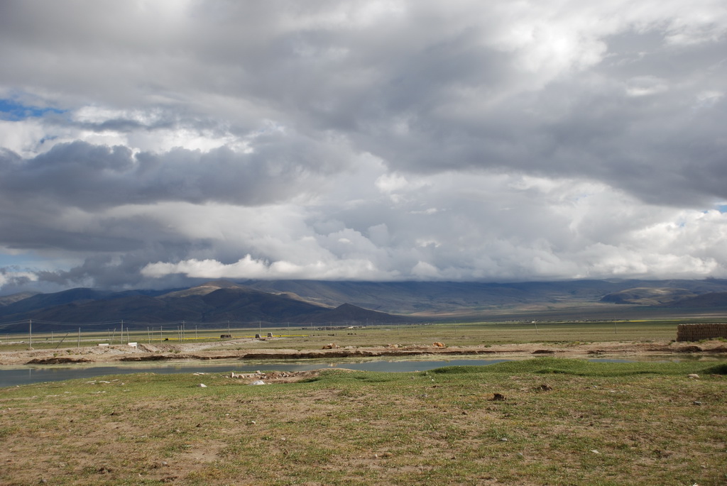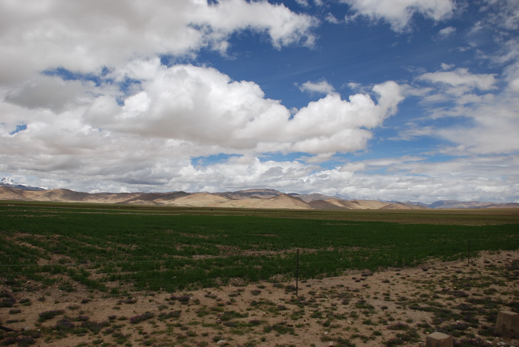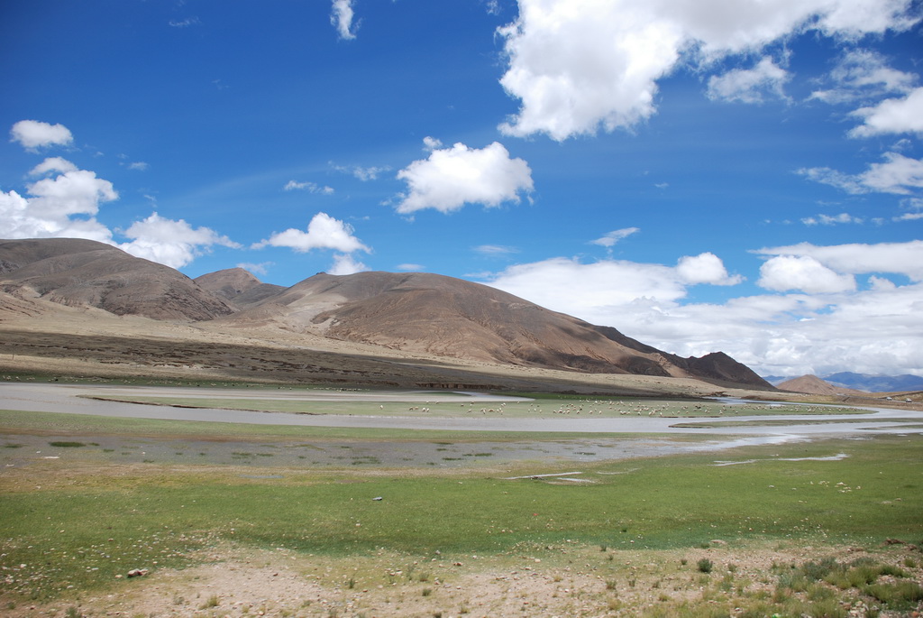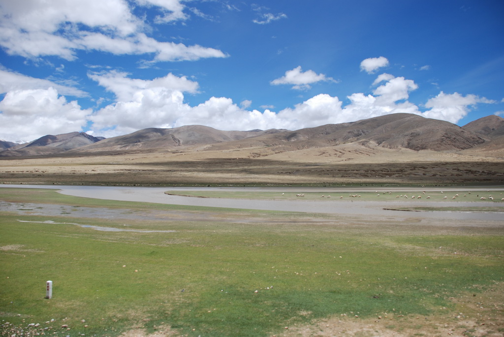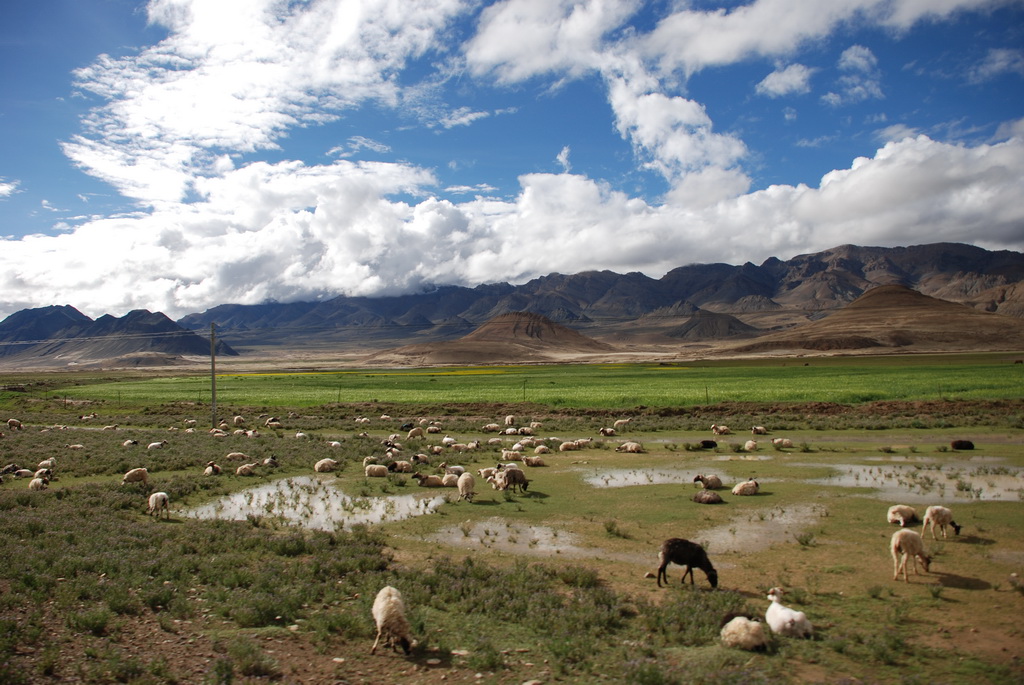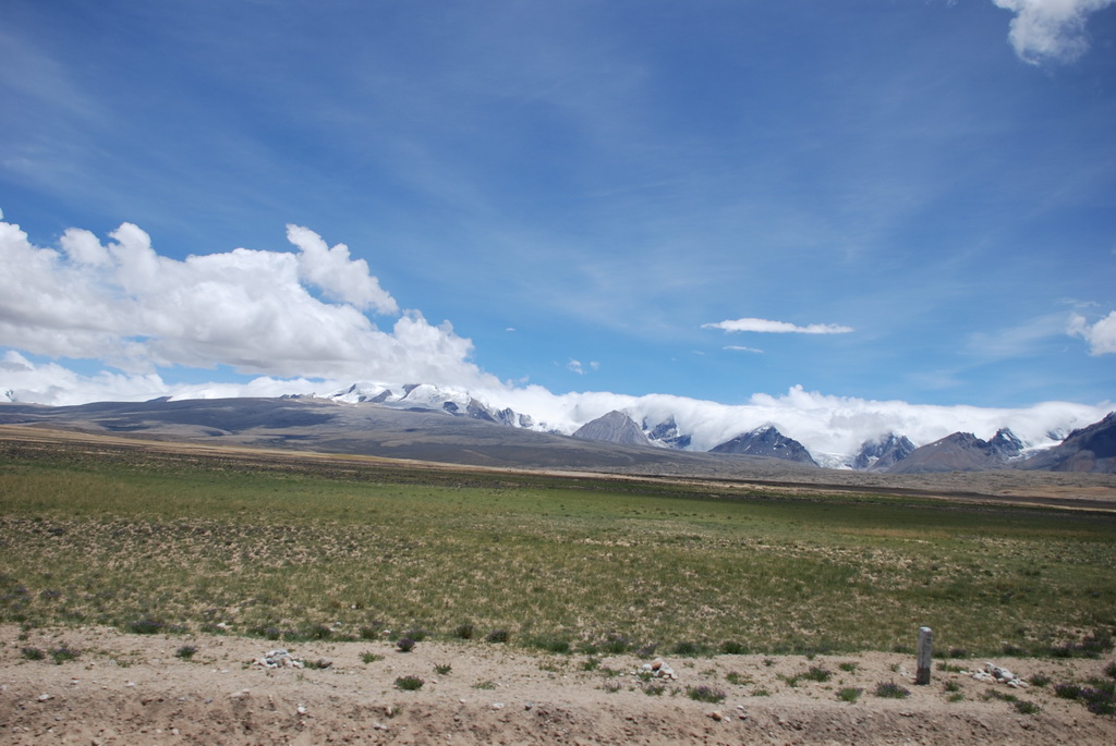 回頭走昨天走過長長一段顛簸的泥土路,回到老定日,剛好是午餐時間。下午將前往希夏邦馬峰自然保護區,希夏邦馬山海拔8027M,是世界上十四座海拔八千公尺以上的第十四高峰。由於不是晴空萬里的日子,我們也只是在某一處的路邊遠眺,當然也沒有看到希夏邦馬山的真面目。保護區內有一高原湖泊佩枯措,這是一星期以來,看到最多藍天的一天。真正看到了西藏的風光,藍天、白雲、雪山、湖泊,其實再加上草原、牛羊才更完整。