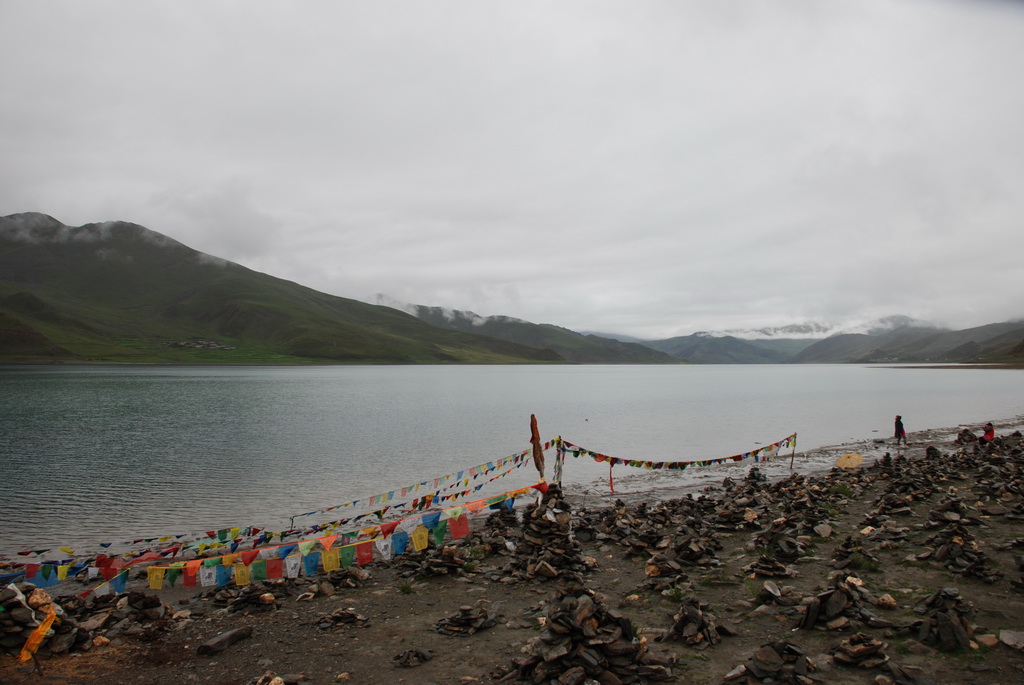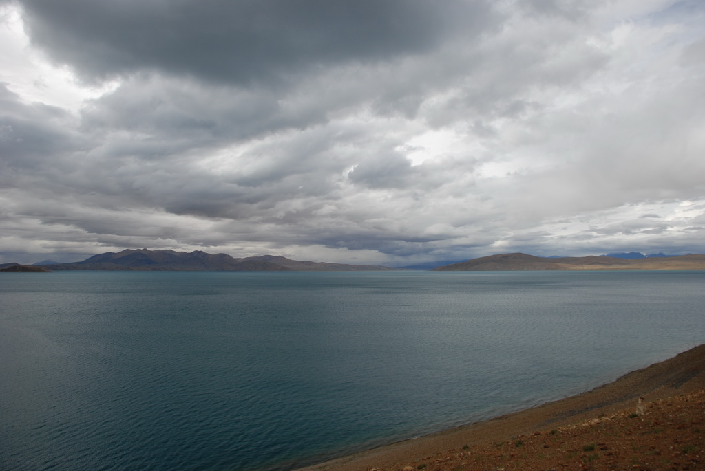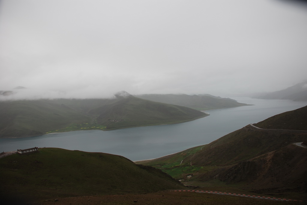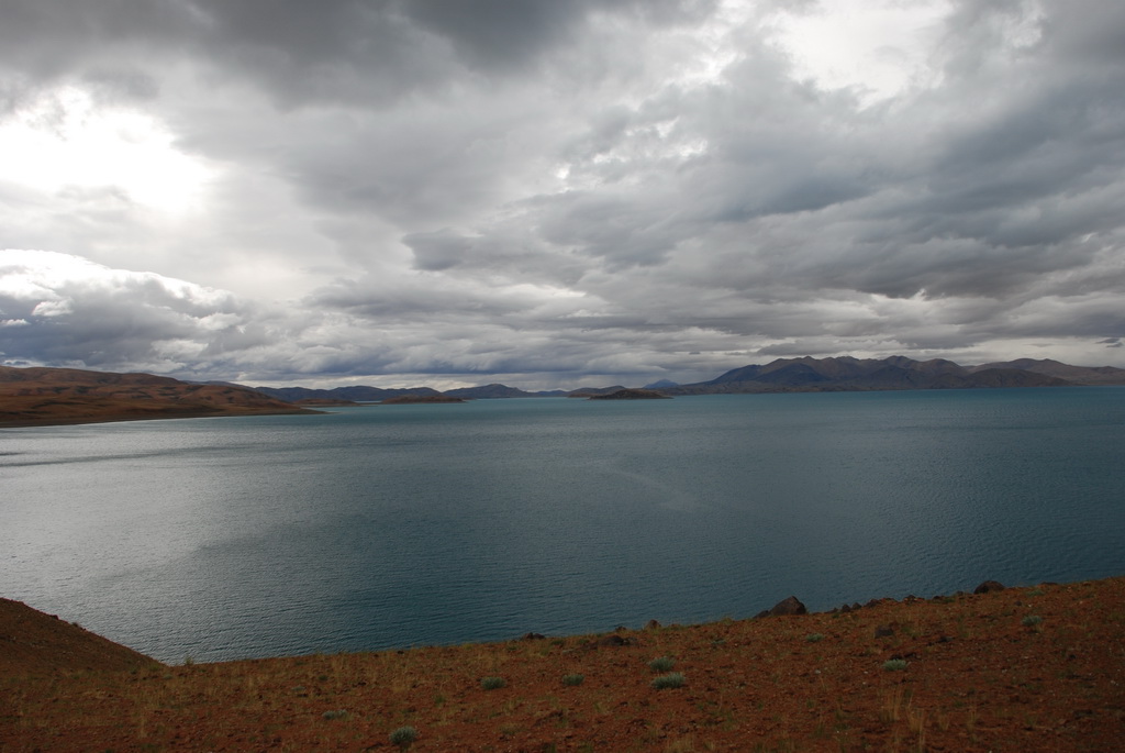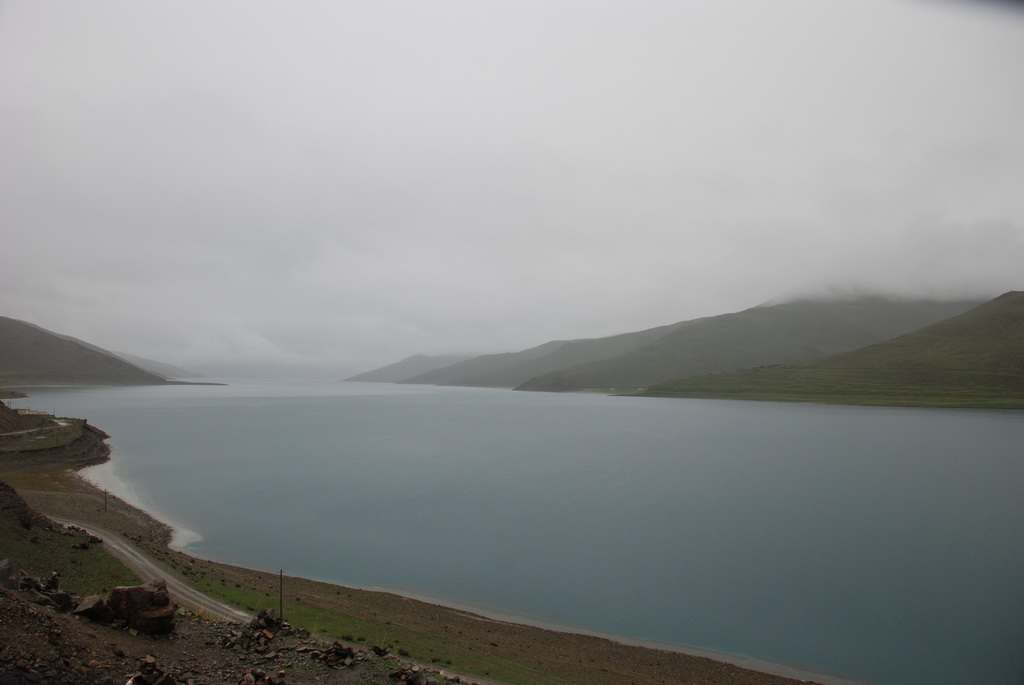 羊卓雍措是西藏三大聖湖之一,位於山南浪子卡縣。藏語的羊是上面,卓是牧場、雍是碧玉、措是湖,藏人視為是散落的綠松石耳墜。藍天、白雲、雪山、聖湖是遊西藏的四大主題。今天的藍天、白雲已為烏雲取代,只能換個心境欣賞這傳說中的美麗湖泊,洗滌人們心靈中無數的煩惱。