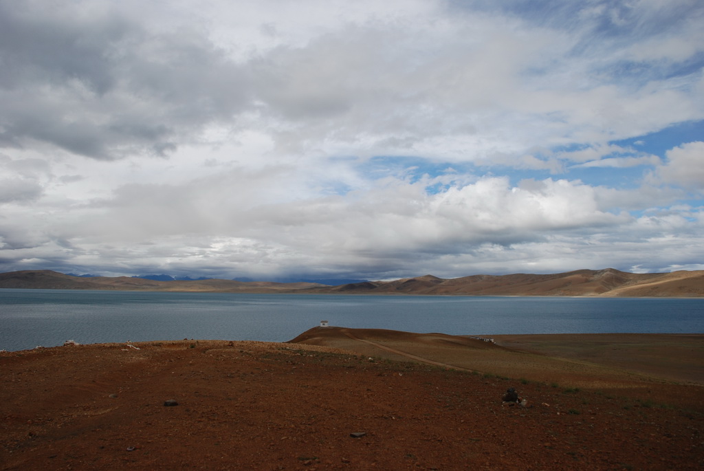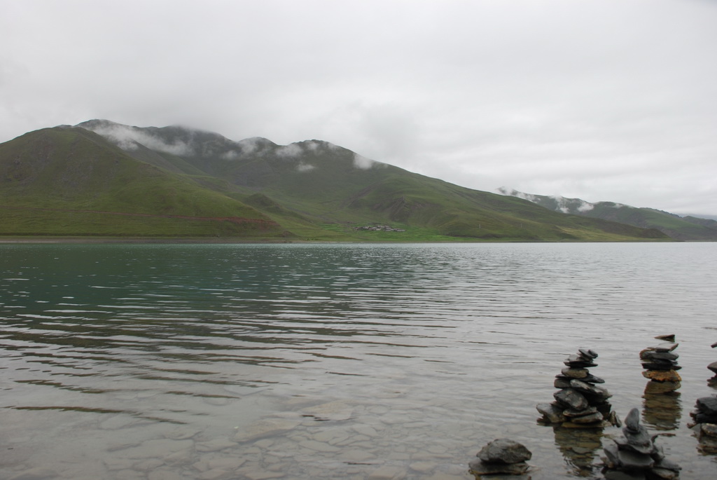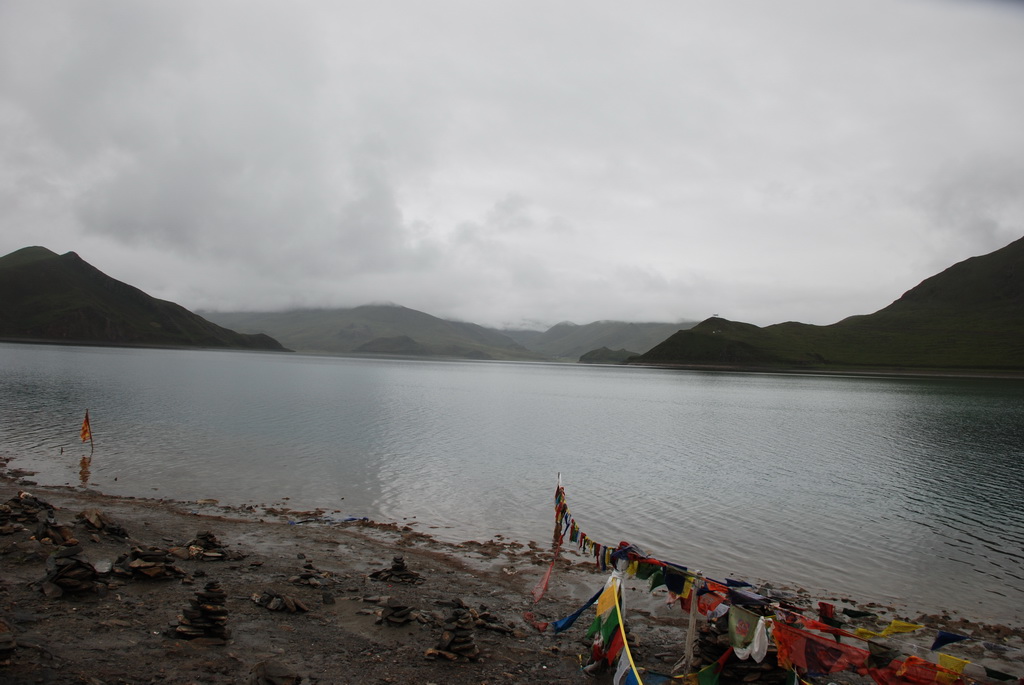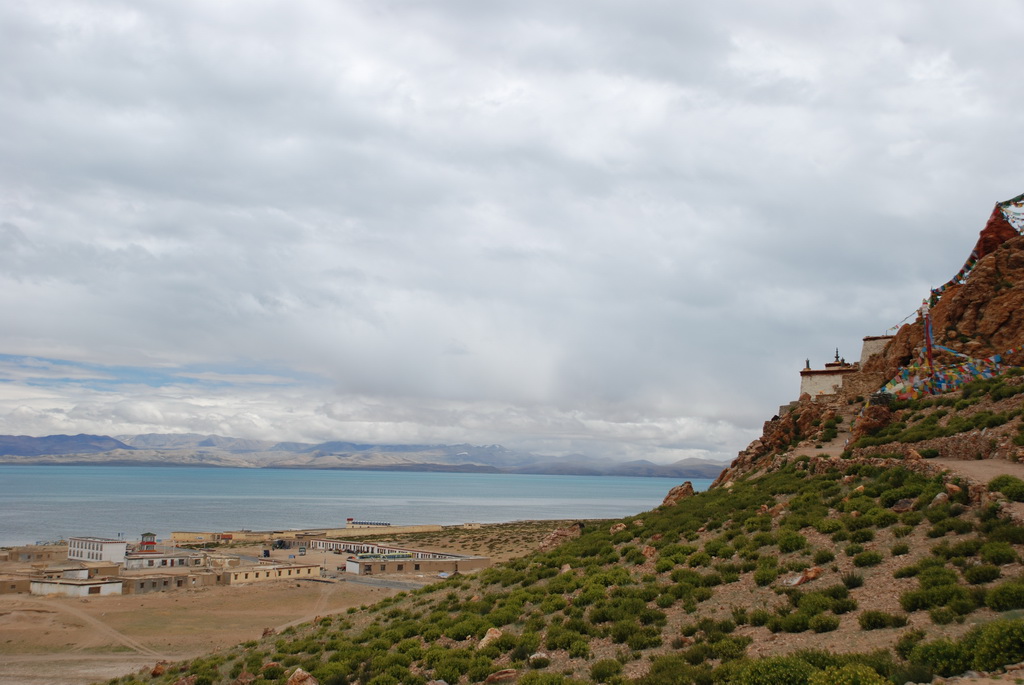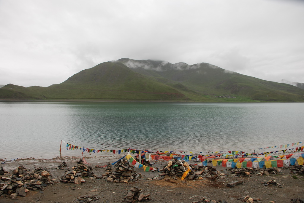 羊卓雍措是西藏三大聖湖之一,位於山南浪子卡縣。藏語的羊是上面,卓是牧場、雍是碧玉、措是湖,藏人視為是散落的綠松石耳墜。藍天、白雲、雪山、聖湖是遊西藏的四大主題。今天的藍天、白雲已為烏雲取代,只能換個心境欣賞這傳說中的美麗湖泊,洗滌人們心靈中無數的煩惱。