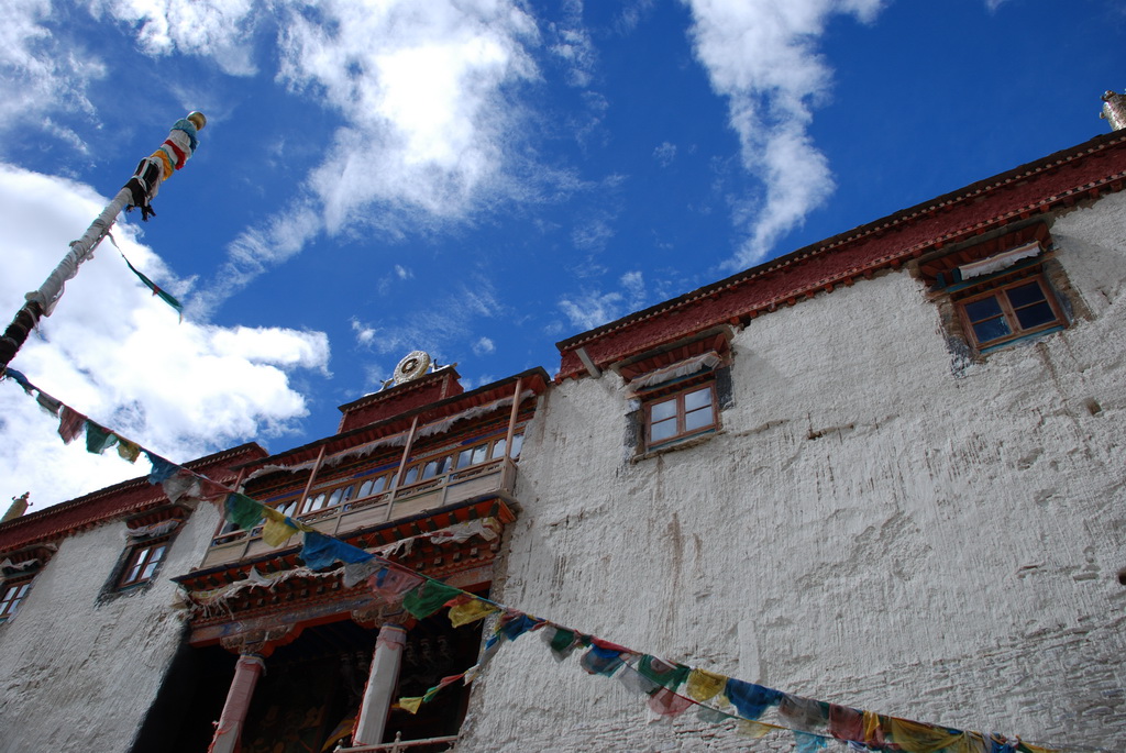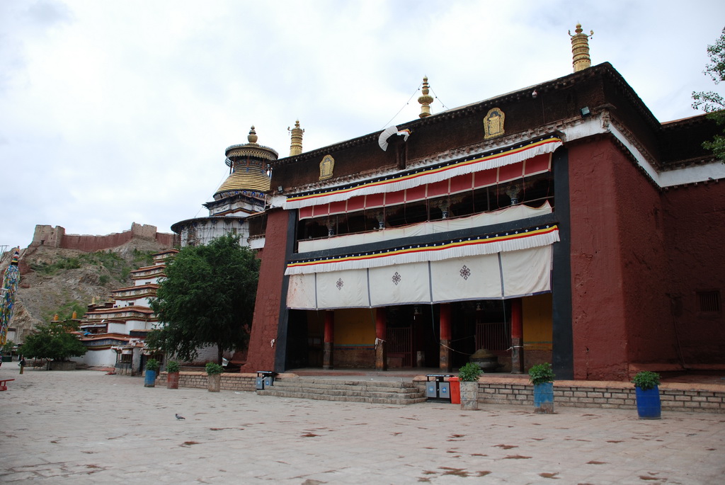 日喀則是西藏第二大城,扎什侖布寺則是日喀則的象徵,寺院依山而築,壯觀雄偉,可與布達拉宮媲美。可是我們沒有安排參觀,不知道為什麼,我也沒問。在這裡我們參觀了宗山抗英遺址白居寺寺廟參觀多了,興趣已大減,跟著大家繞寺內一圈,依習俗向諸佛菩薩雙手合十禮敬 諸佛。至於有關眾神的來歷,也就不太留意聽解說了,何況有許多部分已重複多次。走出主殿想沿佛塔階梯上去看看,入口處寺方人員見我背著相機,開口向我要錢,我不想給就沒進入。離開後同行夥伴告訴我,上去不必給錢,心想既已無緣就不想再上去了。
