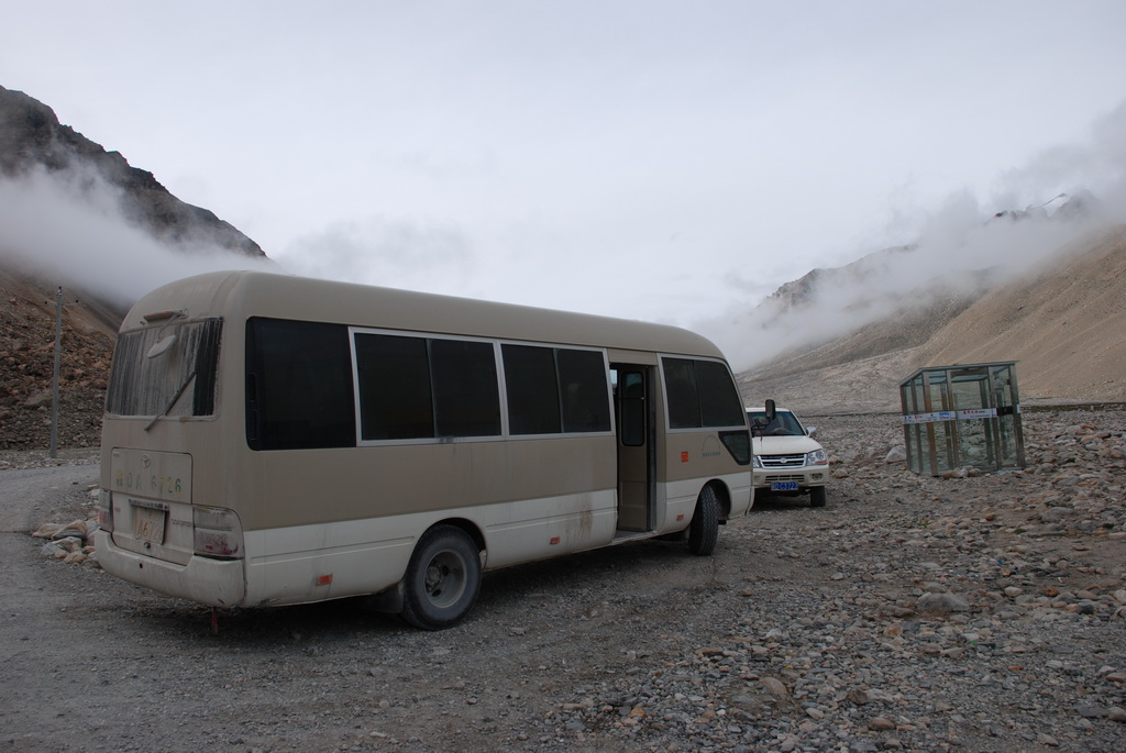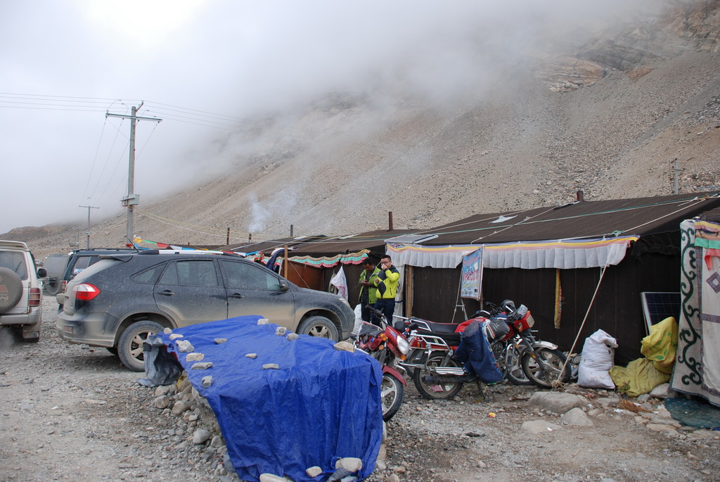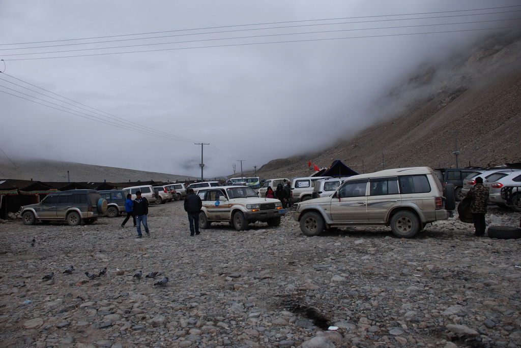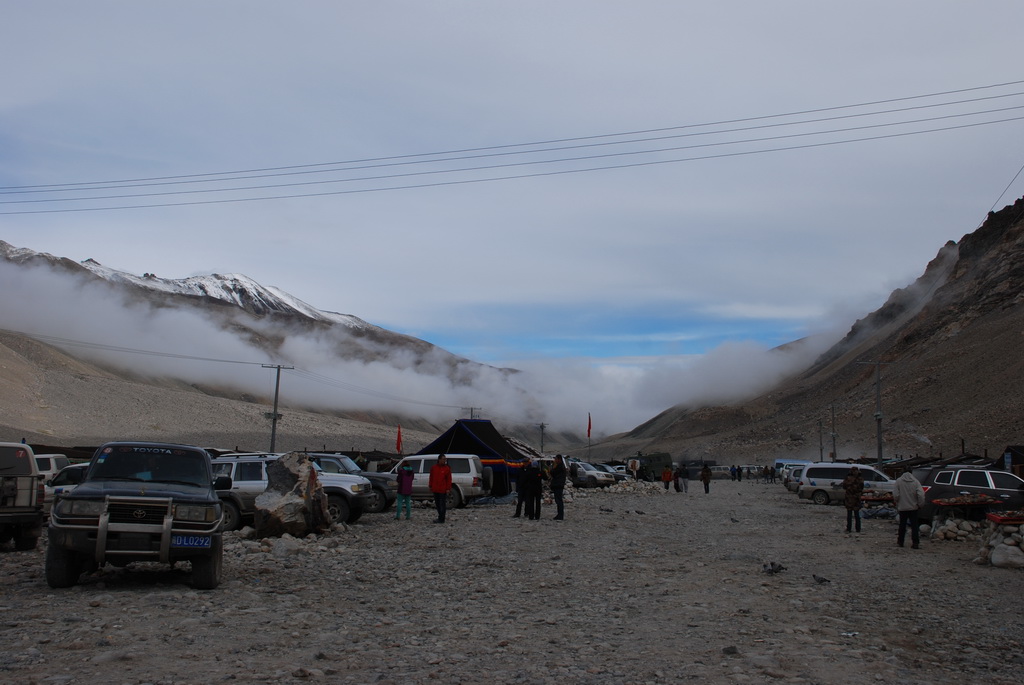 八點十分車隊出發,十分鐘後抵達一處收費站,這裡四周擠滿了帳 篷,看看外面的車輛,帳篷內應該也住滿了想一睹珠峰的遊客。