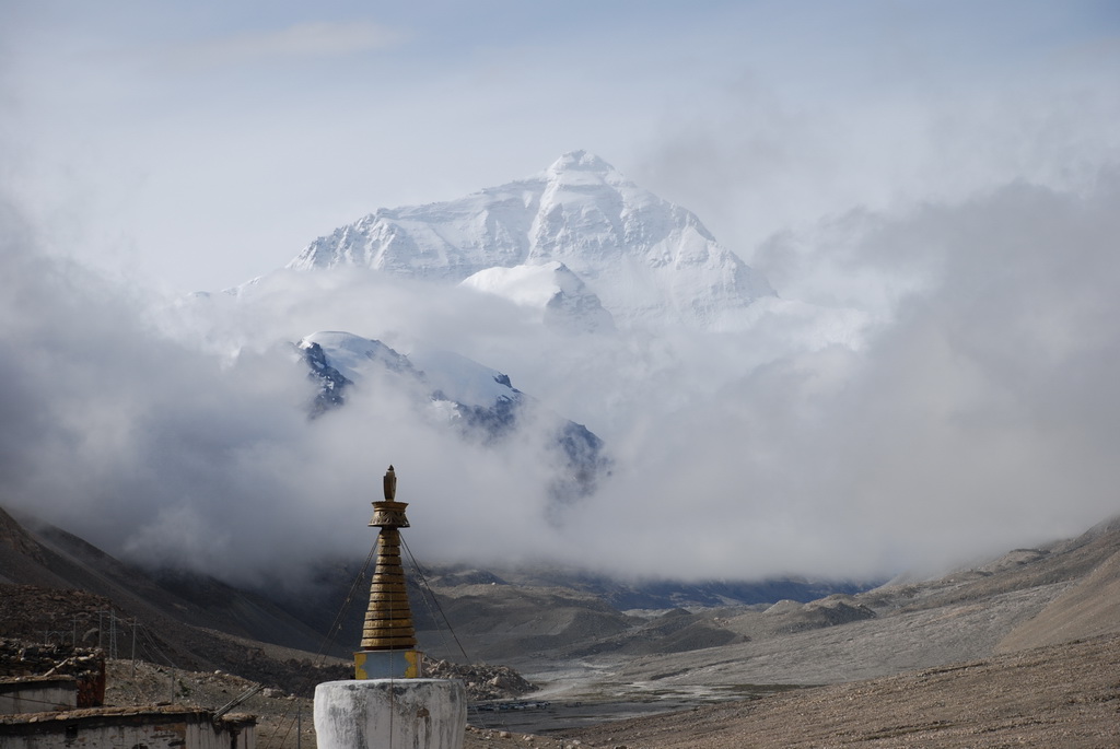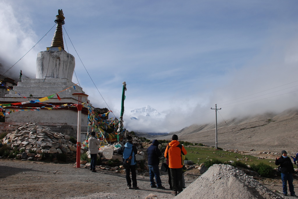 7/17 D7 珠峰大本營本來是昨天的行程,因昨日大塞車耽誤了4.5小時,改到今天早上。昨晚星空燦爛,早上六點半就起床,想到絨布寺看日出。可是事與願違,整個天空烏雲密佈,還吹著強風,既已起床還是到原定的地方等等看。