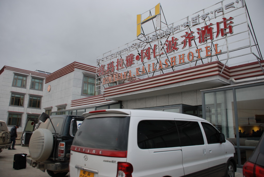 離開普蘭回程經過拉昂措稍做停留休息,本來在這裡可清楚看見岡仁波齊神山,然而天氣都不是十分晴朗,也就無緣目睹。拉昂措被稱之鬼湖,它和聖湖其實 只隔著一座山,一條公路,卻有一聖一鬼之別。天色快暗了,往塔欽還有一段很長的距離。轉個彎 離開國道219就已看到塔欽市區,沒想到進塔欽的安檢,嚴格地超乎想像,就像是在機場安檢一樣,所有的行李都需拿下車,通過X光機,人員也得經X光機及搜身才放行。看看左欄的里程數,511公里,已近晚上九點。真得有夠辛苦,當然開車師傅才是最辛苦的。