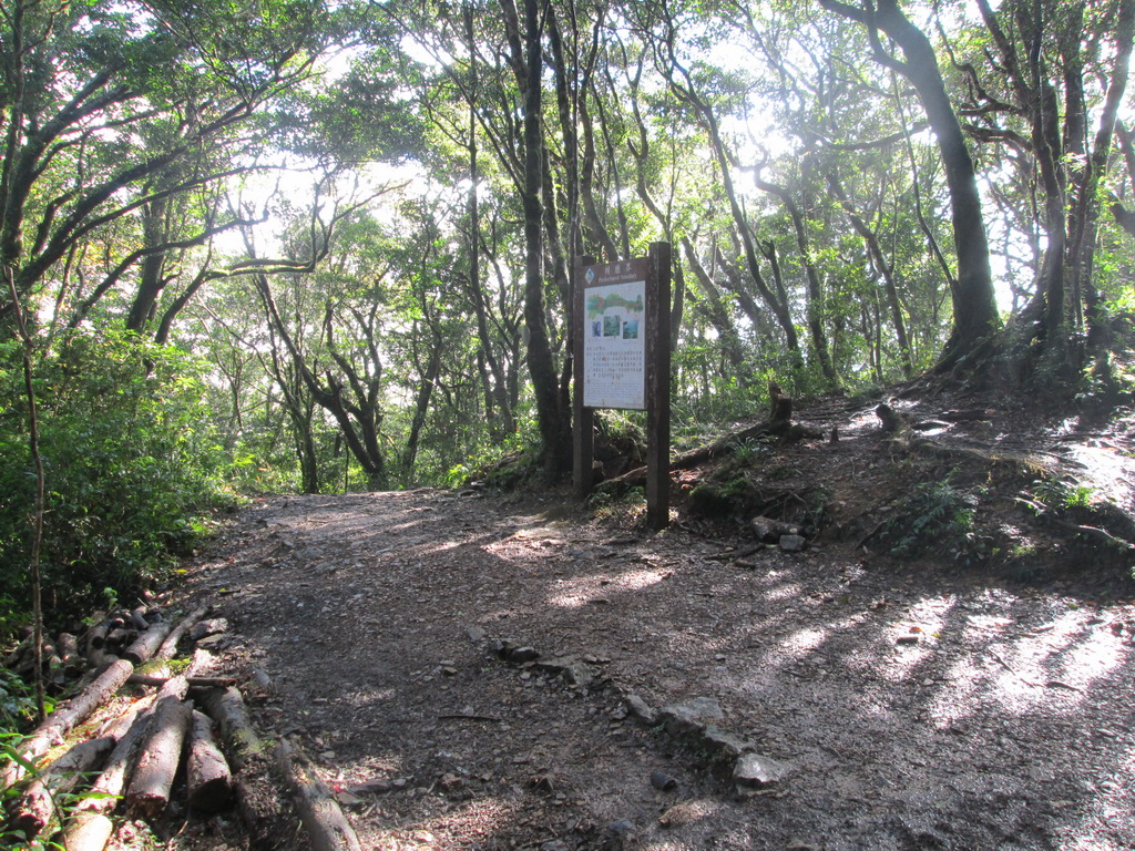 過2.5K沒多遠,來到位在稜線上的州廳界,越過此處古道路徑就是下坡。據登山資料顯示姑子崙山登山口應還在前方不遠處,登山口有明顯的指示牌,向左即登姑子崙山步道,續往右則是古道往出水坡。