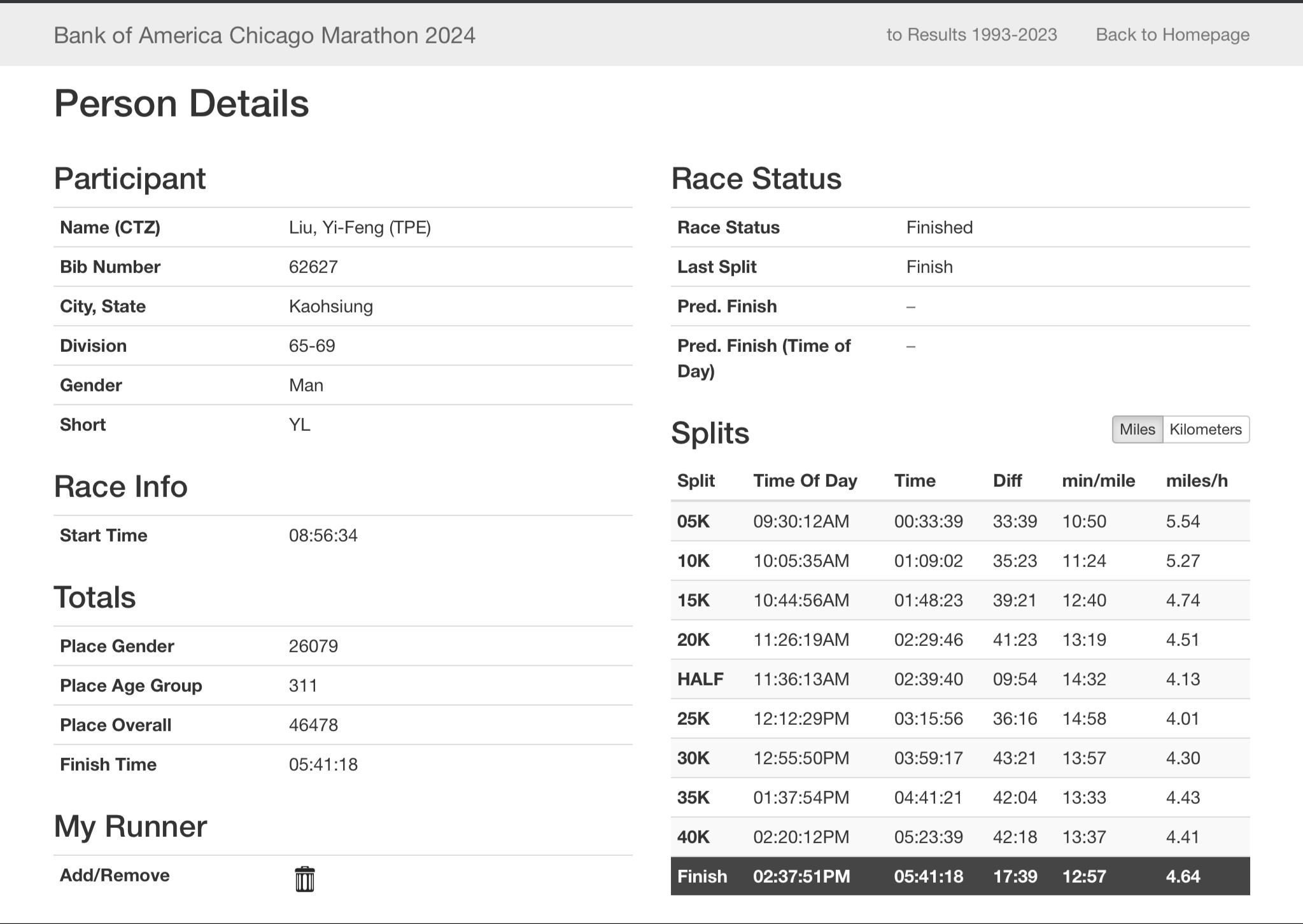 2024芝加哥馬拉松(42.195)(2024/10/13)