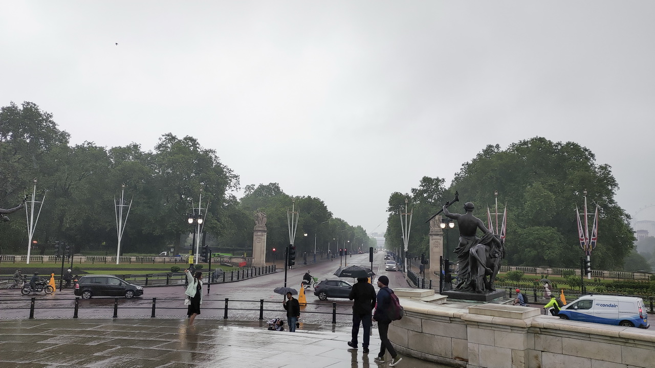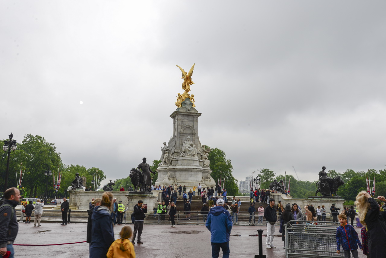 第一站景點白金漢宮,是英國皇室的正式住所,是英國皇室的象徵。剛到陌生的地方不敢隨意亂走,按表操課才是正確的。搭地鐵到Hyde Park Corner,開始步行前往白金漢宮。才九點多還沒有什麼遊客,隨意在圓環雕像前拍照。轉往綠園公園走走,公園的另一端是Green Park站,到白金漢宮在這裡下車也是不錯的。衛兵交接儀式,一般的建議最佳觀看點是在大門兩側柵欄邊,而且要在十點左右就要佔好位置。站了好久偶爾又下著小雨,十點半後突然宣布因為下雨交接儀式取消,眾人失望的離開白金漢宮。我們的行程後段還會回到倫敦,到時候再重新安排來一趟。五月還不是白金漢宮開放參觀的季節,傳統的衛兵交接儀式因雨取消,就轉往西敏寺。