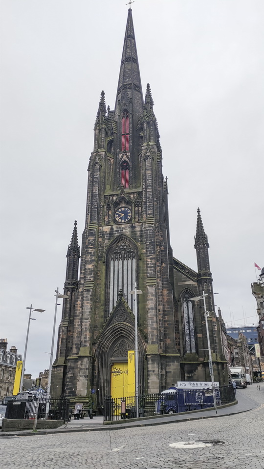 我們住的青年旅館就在火車站前,前往舊城、新城都很近。沿著皇家哩大道(Royal Mile),是經典逛舊城的方式。走在中世紀古城石板路上,空氣中充滿著中世紀的氣息,目光所及也有許多百年建物。首先吸引人注目的是哥德式建築雄偉的聖吉爾斯教堂(St. Giles Cathedral),高聳的皇冠尖塔,是愛丁堡地標之一。續往前行,舊城堡是今天的重點行程。愛丁堡城堡實在是太熱門了,今天的門票已全部售完,大老遠跑來不能沒進城堡。現場掃QR code ,預購5/30的門票。