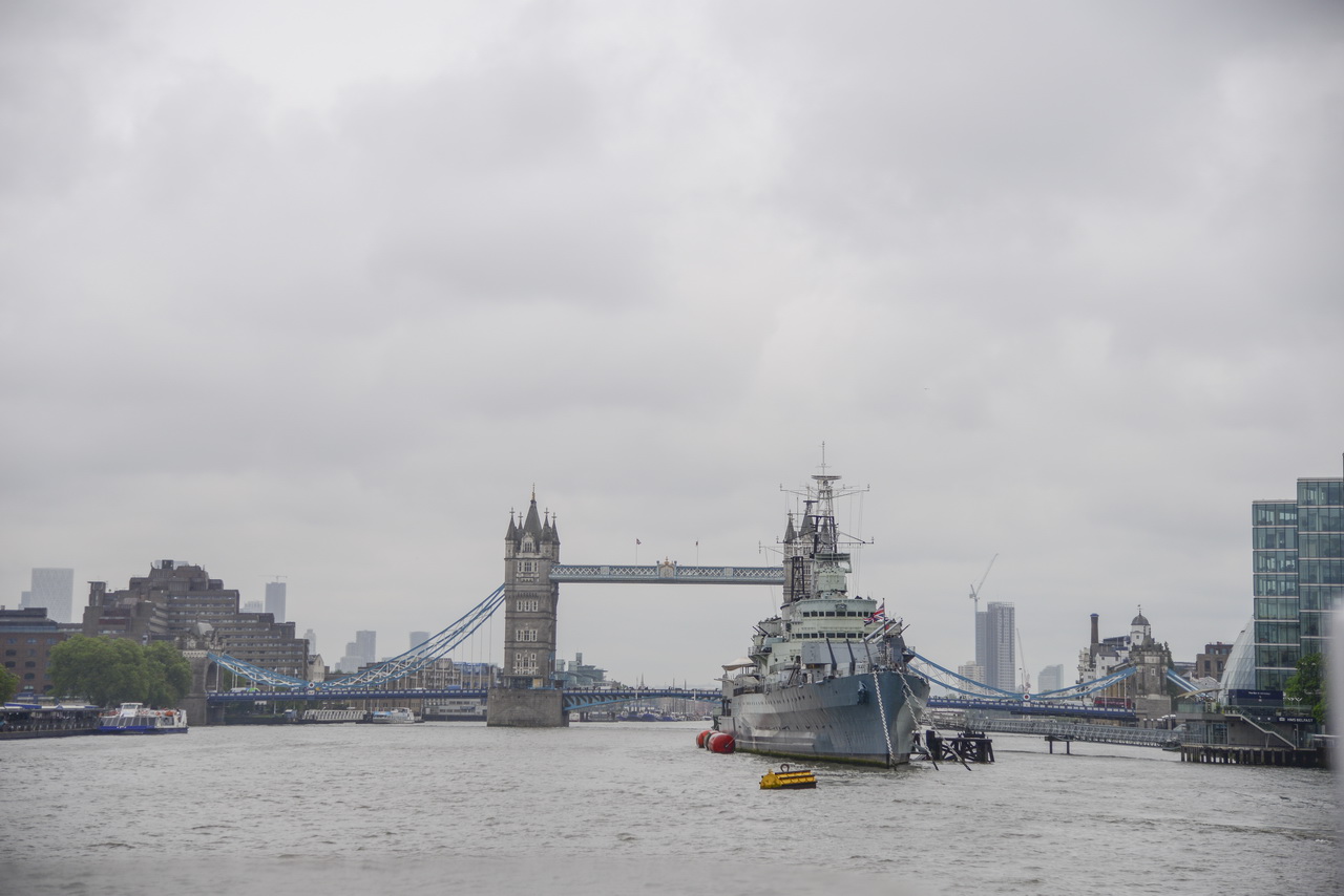一一通過滑鐵盧橋、Blackfriars Bridge、千禧橋、南華克橋、倫敦橋。再來就是世界上著名的倫敦塔橋,搭泰晤士河遊船的重點就是倫敦塔橋。船開到這裡,要在碼頭靠岸。船長必需要把船頭前後掉轉才靠岸,這樣剛好讓坐在各個角落的遊客,都有機會觀賞到塔橋的美景。