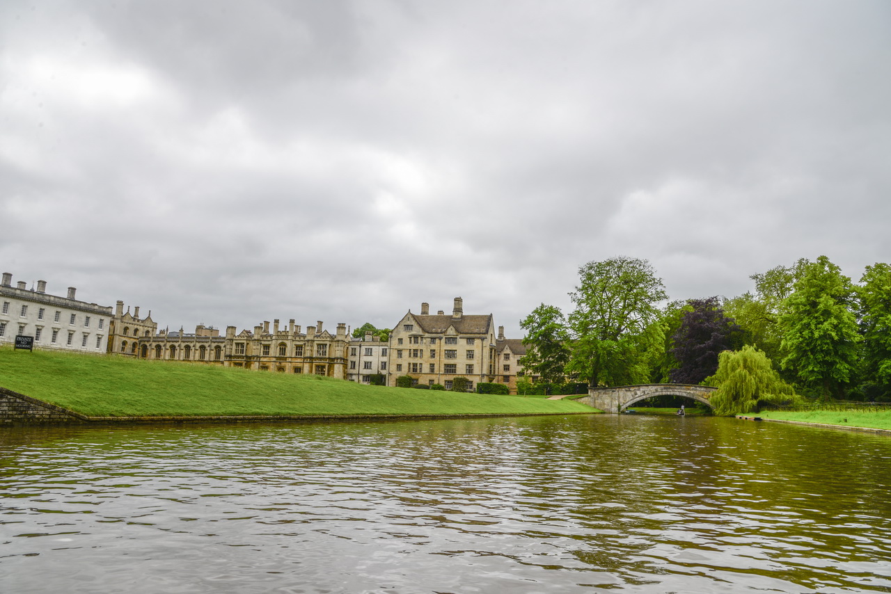 接下來的幾個學院也都滂臨著康河,遊船穿過Clare橋右側就是Clare學院,河岸左側有美麗花園,河岸兩邊高大綠樹給河流增添了寧靜的氛圍。船續往前行,三一學院、聖約翰學院,眾多古老的建築,縕藏著深厚的學術底蘊。遊船折返掉頭之前,最受眾人矚目的焦點是嘆息橋。學生時期考試交卷後的感受,大家都還能心領神會。