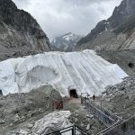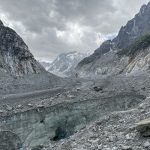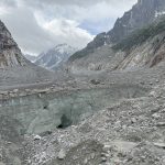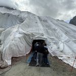 這條冰河受到自然環境影響,每年都在消退中。山谷上方的砂石受到雨水的沖刷,不斷的覆蓋在冰河的上方。因此,這條冰河看起是砂石的顏色。景區管理方在冰河鑿出了一個冰洞,裡面展示冰河的相關知識,和幾座冰雕。在冰河上方的平台往下看,開挖冰洞所遺留的現場,我個人覺得這是對冰河一個很大的考驗。可能是我們這幾天看了太多的高山雪景、冰河等。今天的景點,就沒有那麼高的新鮮感了。