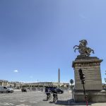 沿著被稱為世界最美麗的香榭麗舍大道,往協合廣場方向散步。浴途知名品牌商店林立,我們只是路過,沒有進去逛,一路來到協合廣場。為了七月十四日的國慶,週邊正在進行著看台等相關工程。大範圍的區域以圍籬圍住了,景觀也就醜了許多,照相取景得想辦法避開。2019年11月曾到埃及旅遊,記得路克索神殿門前的方尖碑,只剩右側一支,左側的另一支現在已經矗立在協合廣場。所以,今天一定要看看這支流浪到法國的方尖碑。