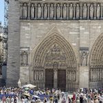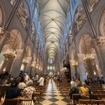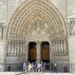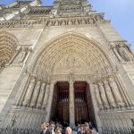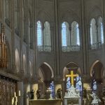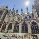早上第一站就到聖母院,比一般遊客到得早,可以省去排隊進場的時間。2019年的一場大火,中殿的屋頂崩坍,尖塔燒毀。經過15個小時的火災,還好大部分重要文物,都保存下來了。尤其是建築物本體結構也都沒有破壤,去年底終於重新開放,雖然沒有趕上2024年的奧運盛會。昨天來這裡時,我已繞過教堂的北、西、南側。其中南、北側都還在復建中。