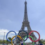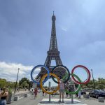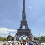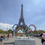 繞過圍籬,來到鐵塔下,鐵塔四周圍得更堅實,還散落著數個巨型木箱,或許又是為國慶而準備的器材。從塞納河的左岸,過橋來到右岸,這個方向留有去年奧運的五環標誌,眾多遊客喜歡和它留下美美的相片,一個接著一個從未間斷。拍艾菲爾鐵塔全景經典畫面,另一地點是夏佑宮,尤其是拍夜景時。