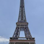 巴黎市區地標之一的艾菲爾鐵塔,完成於1889年的世界博覽會,高312公尺。自從來到巴黎的第一天下午,就已經在住宿處附近的塞納河橋上,遠看它和在河中小島上的勝利女神雕像。這個存在心裡已經有好幾十年的印象,今天才到鐵塔旁來看個清楚。