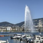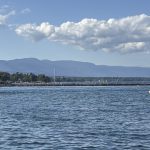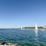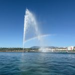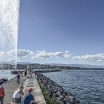 日內瓦以日內瓦湖的湖光山色,和多個國際機構總部所在而聞名。湖水清澈碧藍,面積遼闊,增添了城市的魅力。選擇近火車站及離日內瓦湖不遠的旅館,步行即可抵達。到達日內瓦時已是黃昏時間(以台灣習慣而言),走路到湖邊散步。日內瓦湖是歐洲最大的湖,近舊市區這一端的大噴泉是著名地標,水柱高達140公尺,噴出的水幕還可見彩虹,增添趣味。現在正值夏季,湖邊的告示牌公告,可以在湖邊自由游泳的區域,涼快一夏。