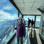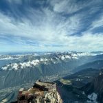 纜車站就建在南針峰的岩泂裡,觀景台已經快到山頂。在這裡眺望不遠處的白朗峰,滿足了眾多愛山人士不可能攀登的險峻山峰,卻可以近距離欣賞的名山。這裡的海拔已經超過3800公尺,千萬記得一切動作都要放慢一些,才不會給自己帶來不必要的麻煩。