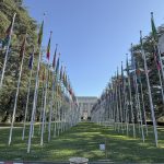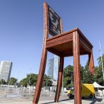 行程安排日內瓦,是為了從這裡搭火車到巴黎。到巴黎的火車班次是下午,早上先到聯合國歐洲總部走走,廣場上有一張三腳椅,提醒世人不要忘記地雷的禍害。總部大門沒有開放,只能從大門門縫拍一張照片,到此一遊,看來這個總部好像不怎麼親民。