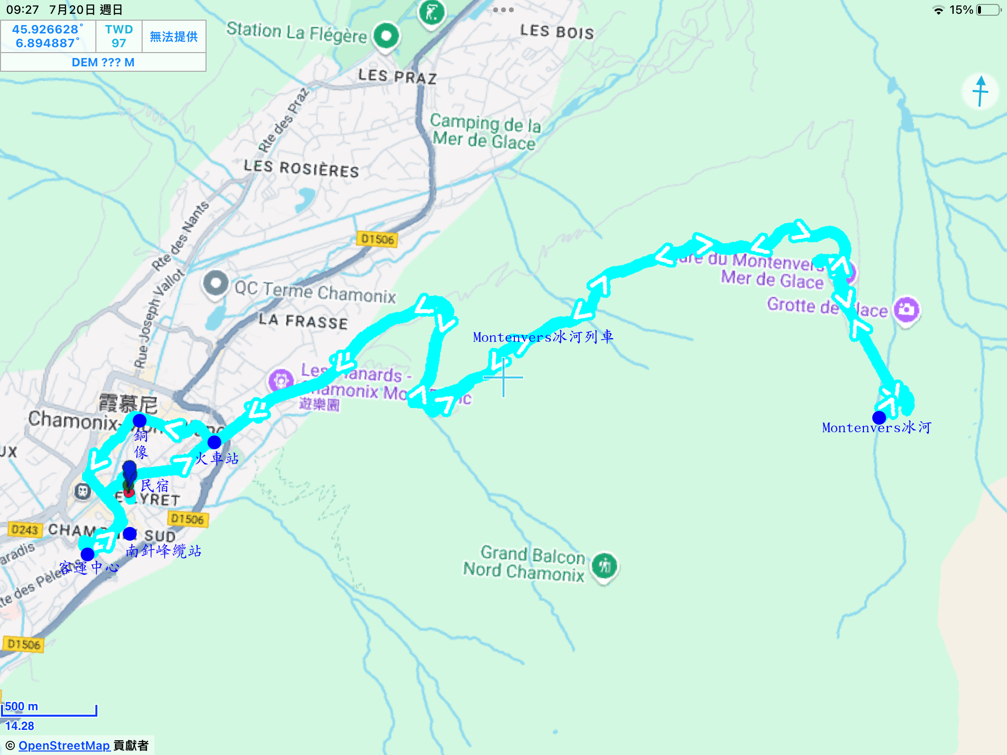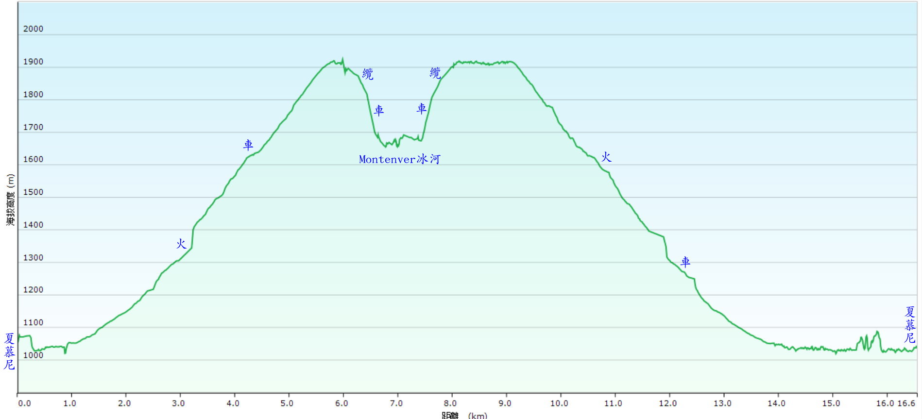 霞慕尼Chamonix>火車>纜車>Montenvers冰河>纜車>火車>霞慕尼Chamonix