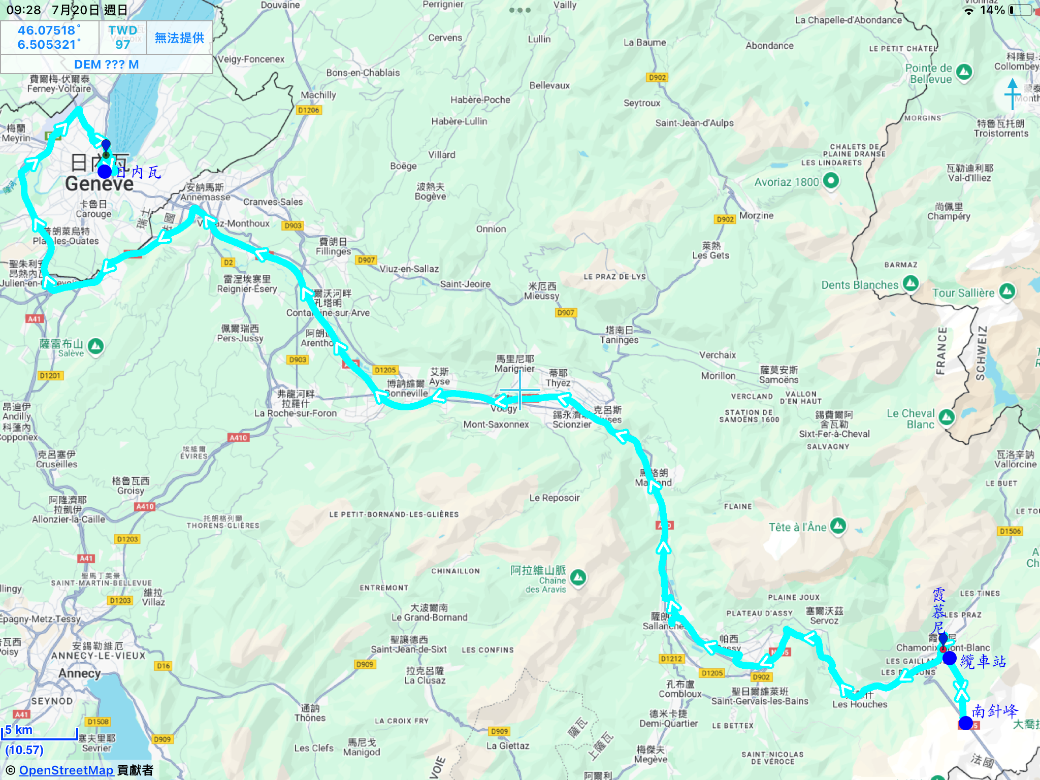 霞慕尼(Chamonix)>纜車>南針峰( Aiguille du Midi )>纜車>霞慕尼(Chamonix)>巴士>日內瓦巴士站(Geneva Bus Station)