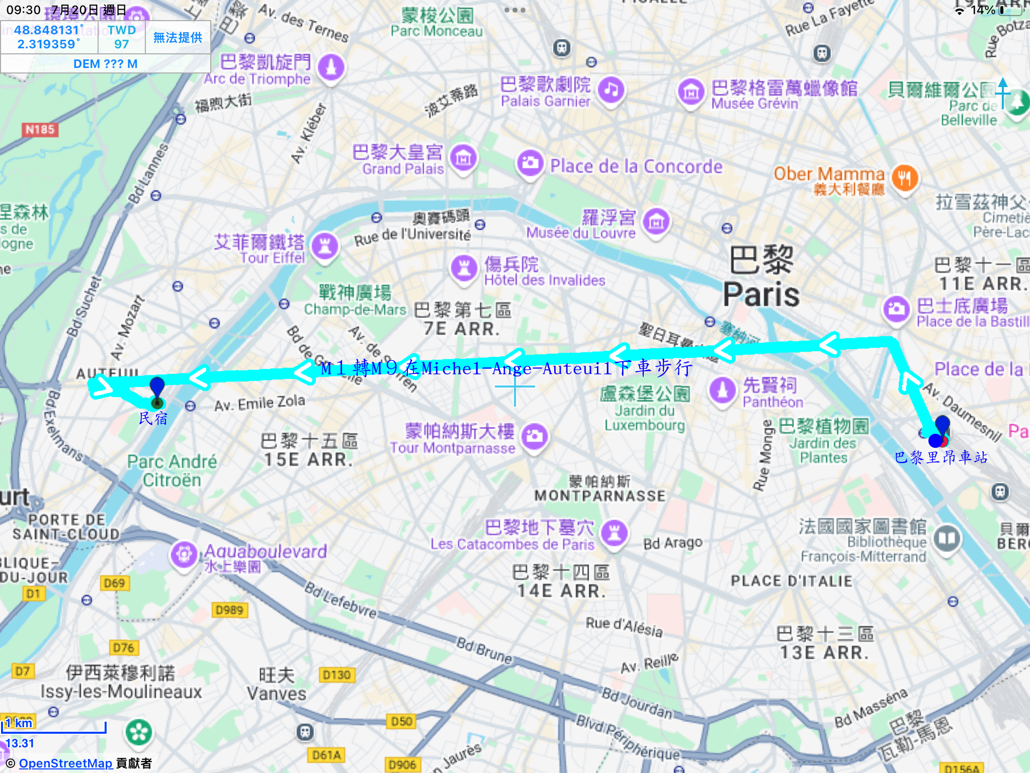 剛到巴黎,我們住的民宿和里昂車站的距離,感覺有點遠。先搭上M1,再轉M9。由於巴黎的地鐵幾乎沒有電扶梯或電梯,轉車時讓我們吃足了苦頭。上上下下的樓梯,不知道換了幾個。期間有幾次碰到熱血法國年輕人,剛說完需要幫忙嗎,手就提起行李上或下樓梯了。讓我們省了不少體力。