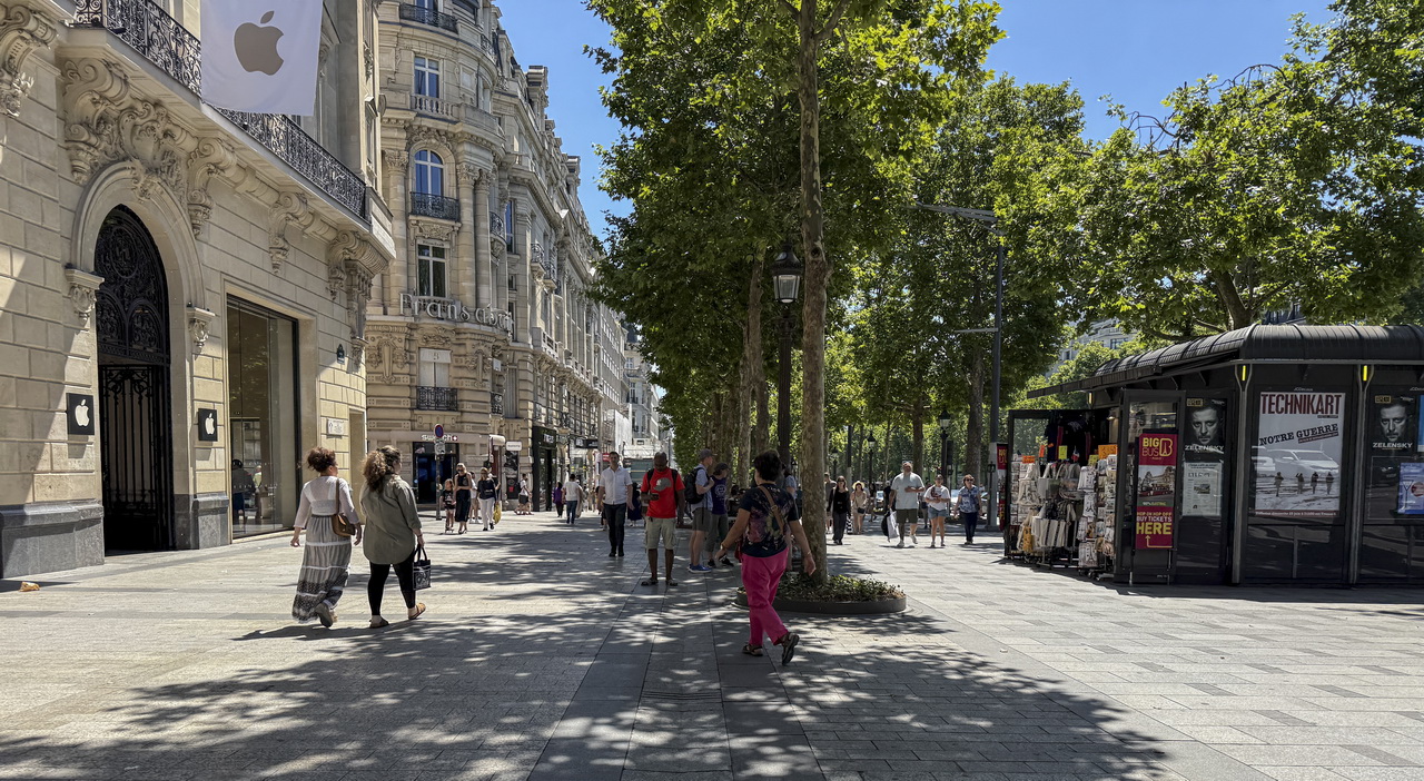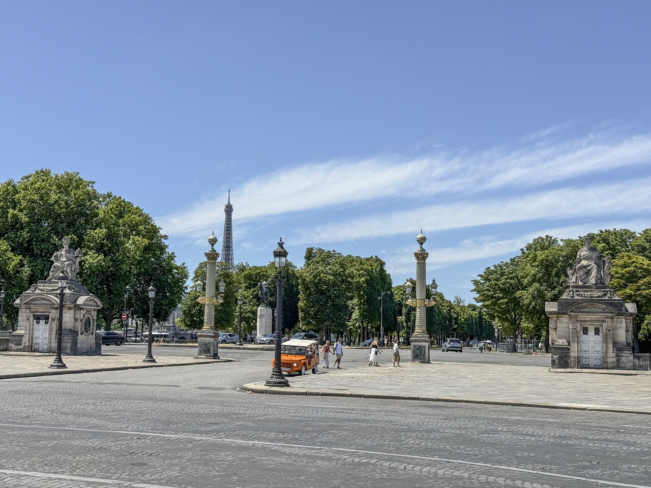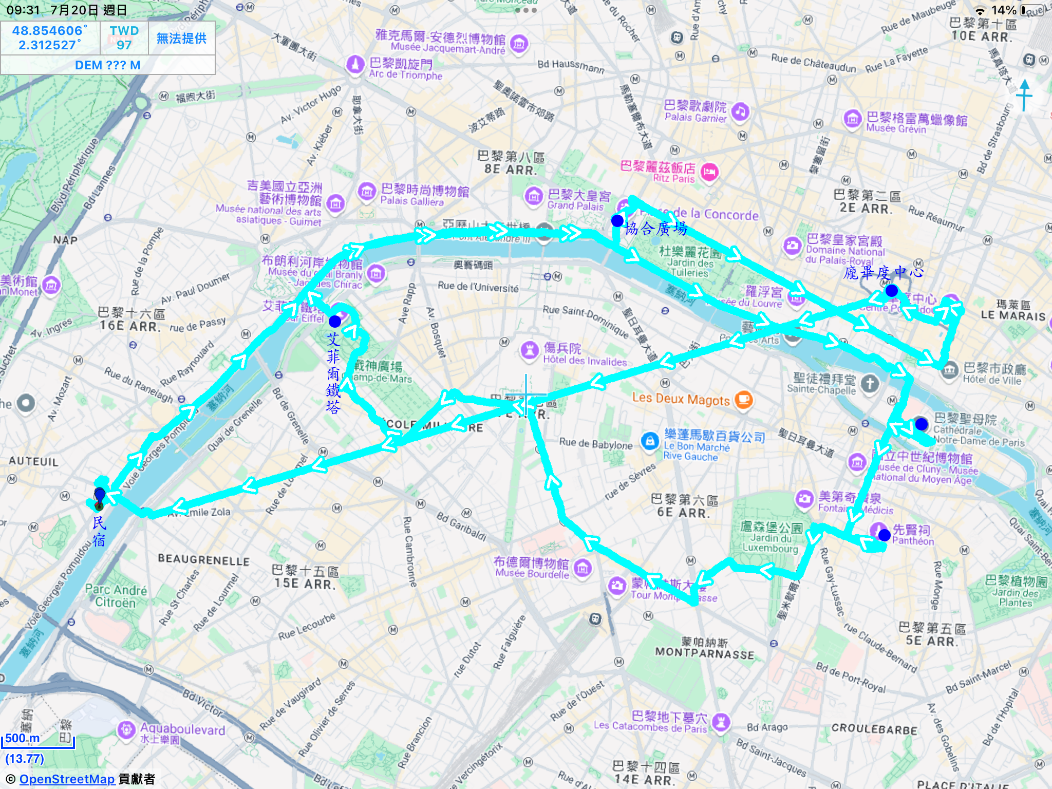 沿著被稱為世界最美麗的香榭麗舍大道,往協合廣場方向散步。浴途知名品牌商店林立,我們只是路過,沒有進去逛,一路來到協合廣場。為了七月十四日的國慶,週邊正在進行著看台等相關工程。大範圍的區域以圍籬圍住了,景觀也就醜了許多,照相取景得想辦法避開。2019年11月曾到埃及旅遊,記得路克索神殿門前的方尖碑,只剩右側一支,左側的另一支現在已經矗立在協合廣場。所以,今天一定要看看這支流浪到法國的方尖碑。