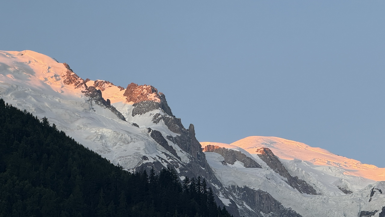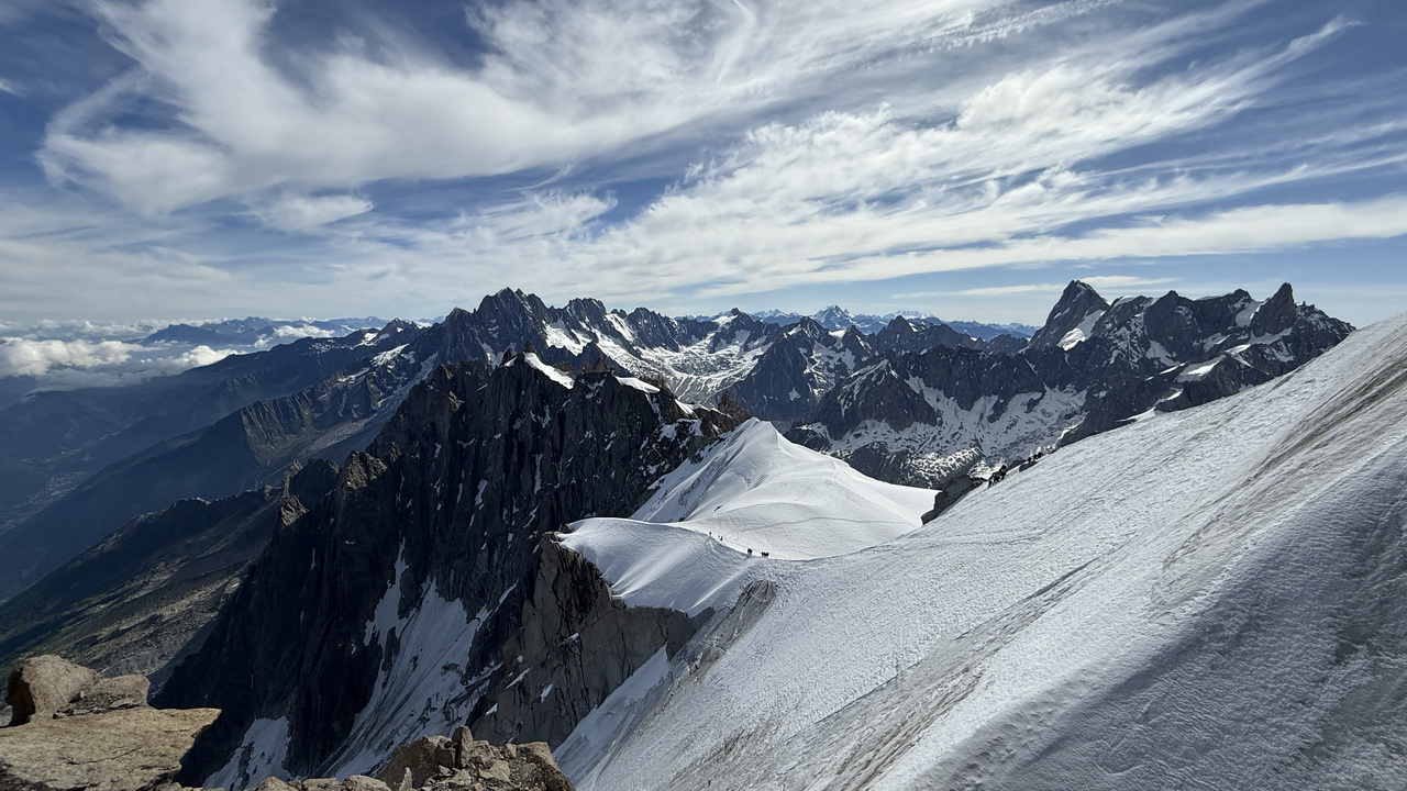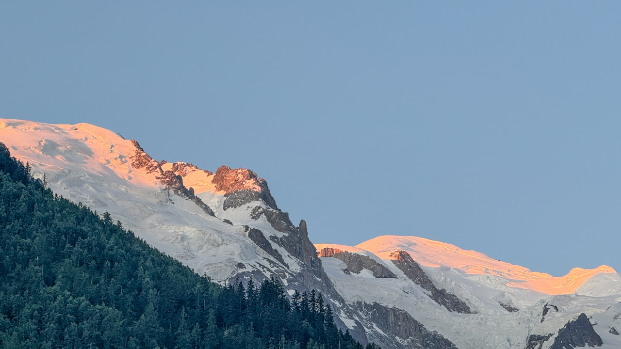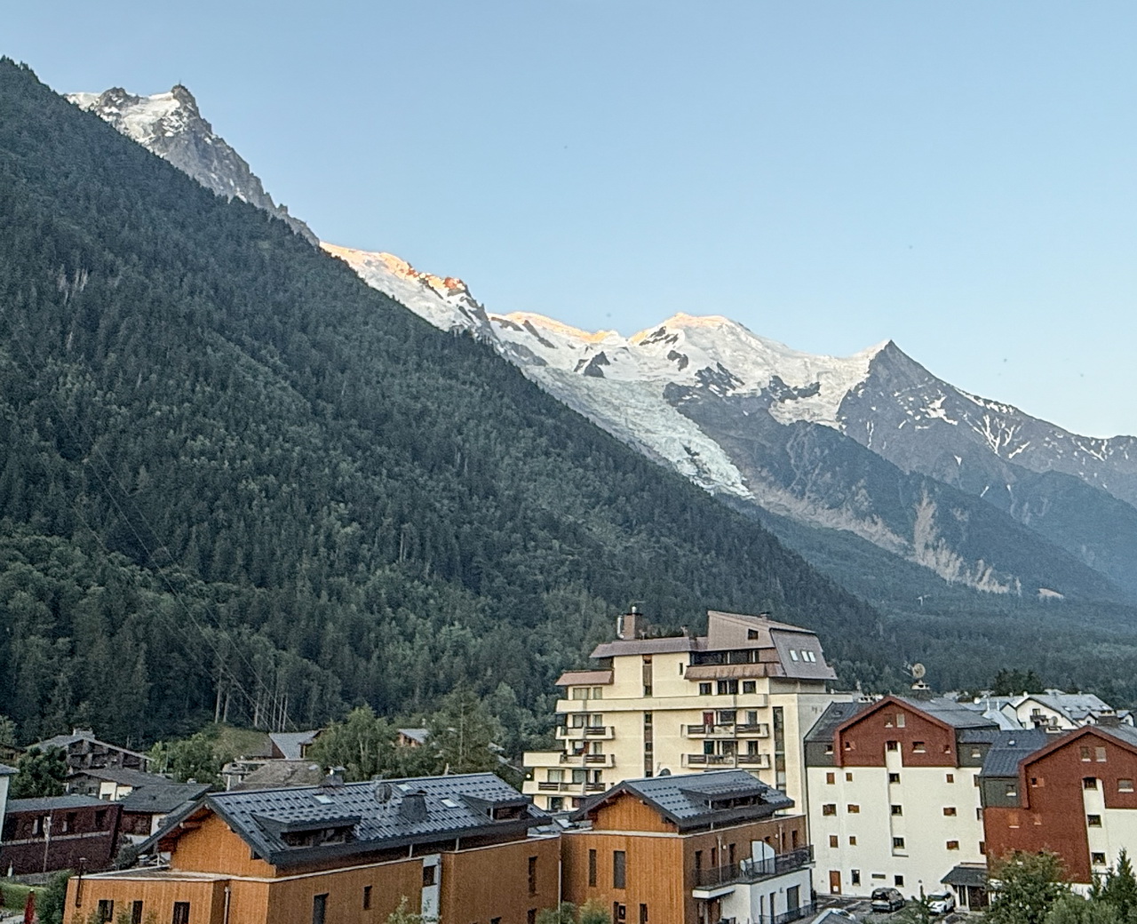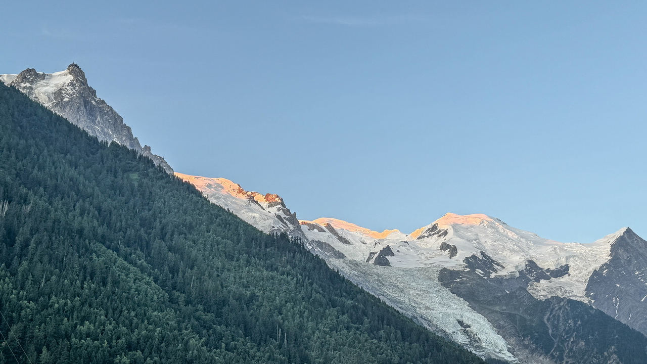纜車站就建在南針峰的岩泂裡,觀景台已經快到山頂。在這裡眺望不遠處的白朗峰,滿足了眾多愛山人士不可能攀登的險峻山峰,卻可以近距離欣賞的名山。這裡的海拔已經超過3800公尺,千萬記得一切動作都要放慢一些,才不會給自己帶來不必要的麻煩。
