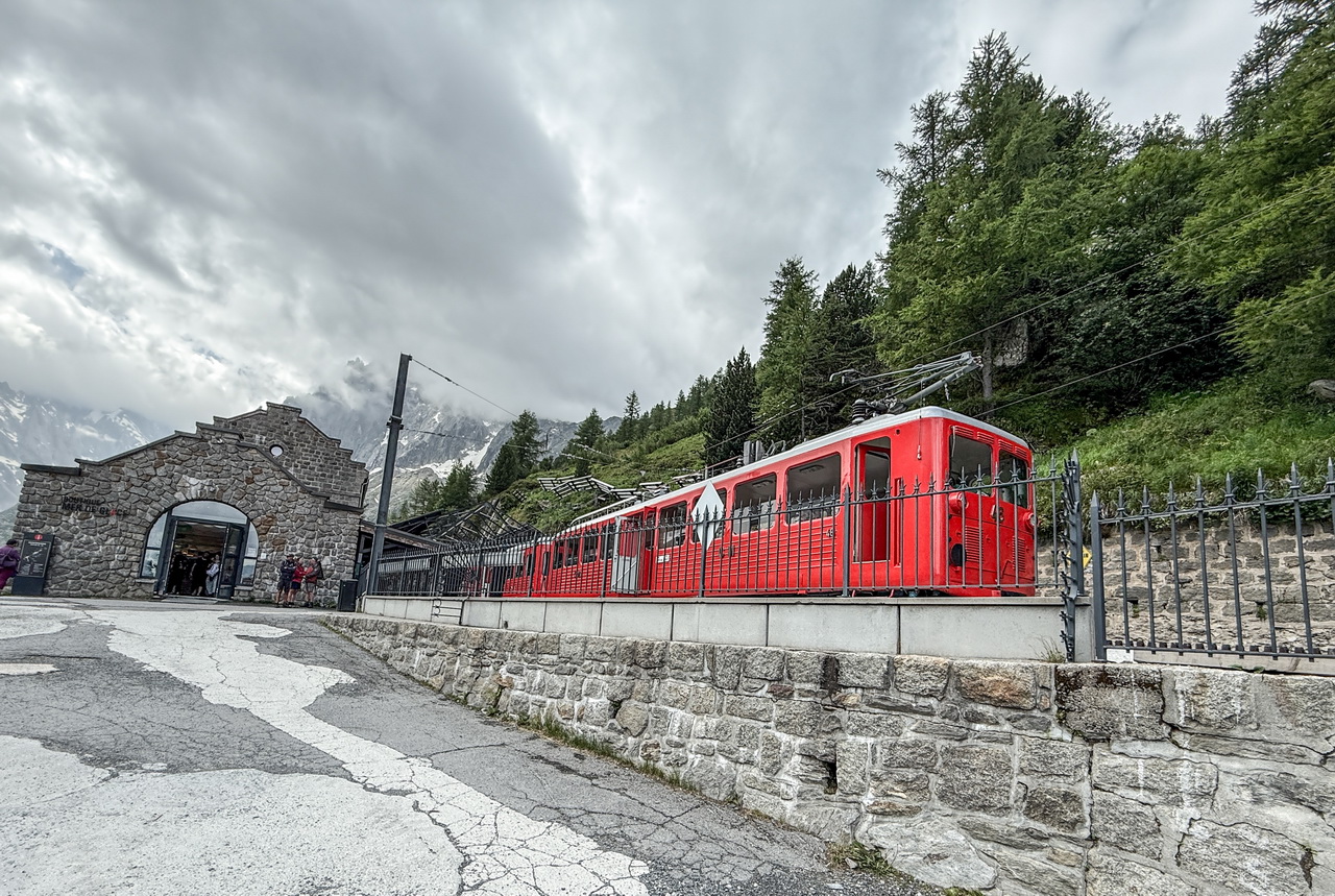 前往Montenvers冰河,要在霞慕尼火車站右側後方的專用火車站搭Montenvers-Mer de Glace的冰河列車。再轉搭一小段纜車下到冰河山谷。
