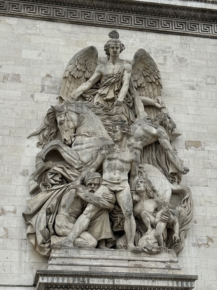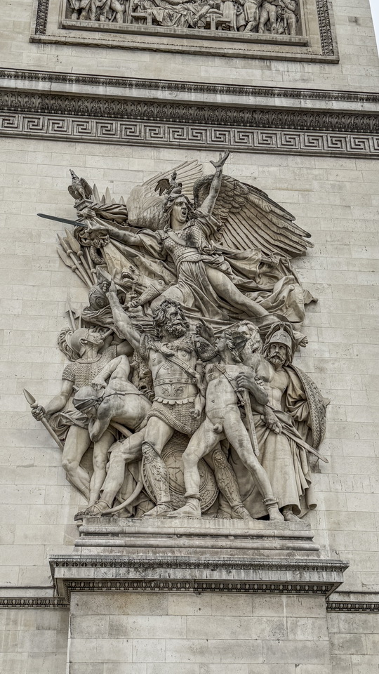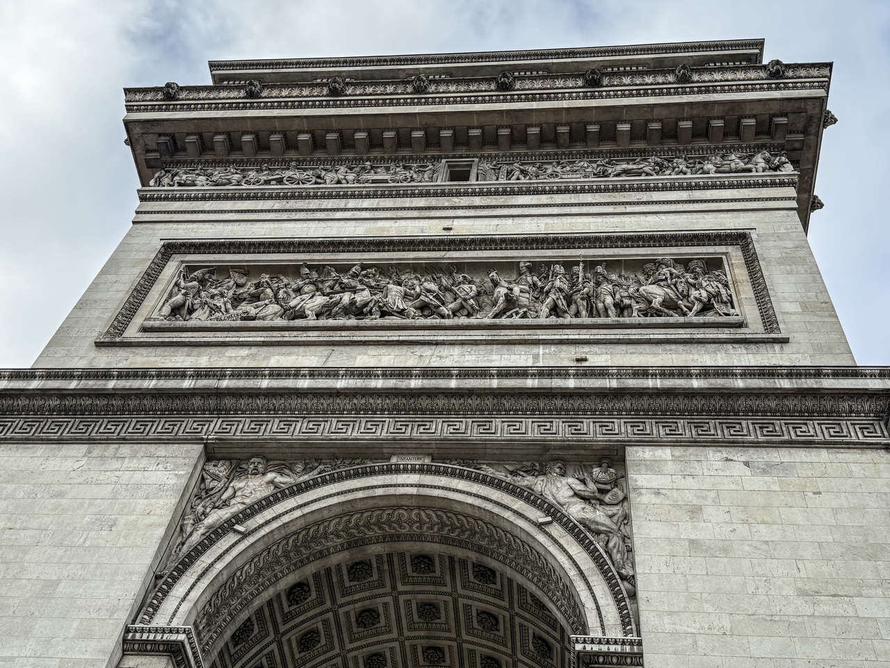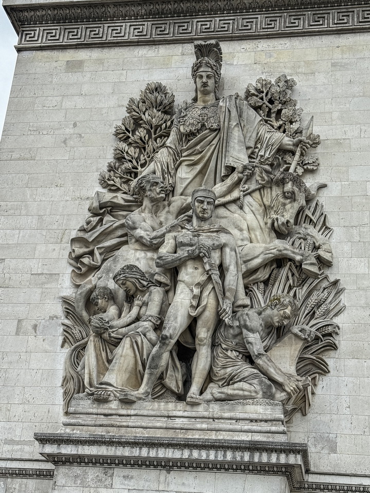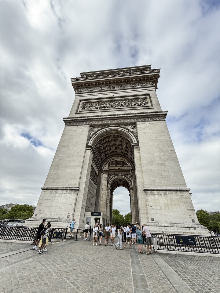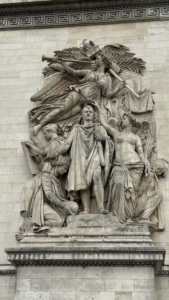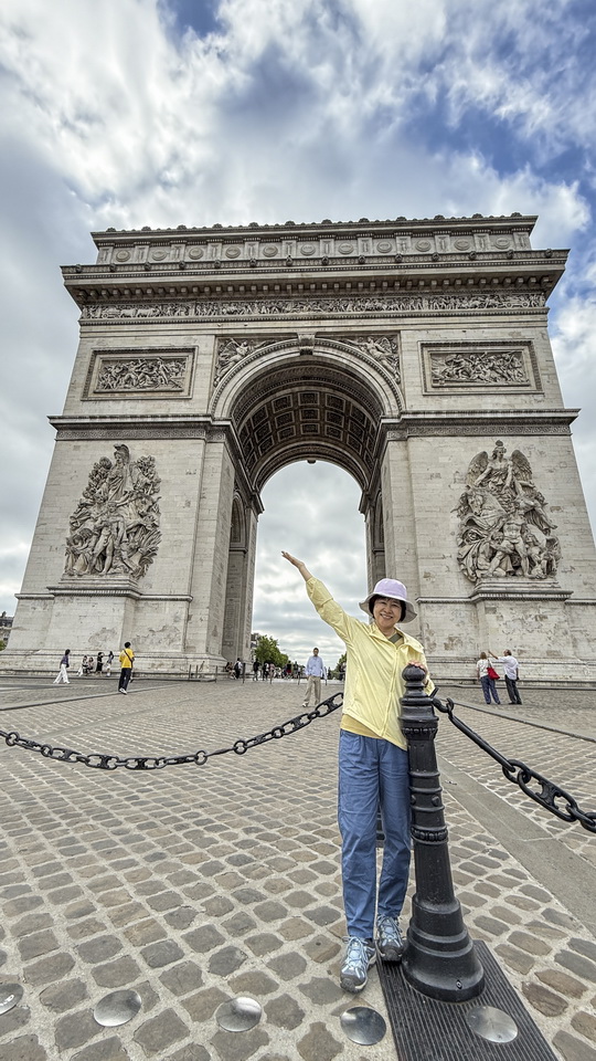 今天是星期日,開始使用Navigo 週票並不划算,我們採用逐次買單程票方式搭車。第一站是凱旋門,開始使用六天期的博物館通票。法國最具代表性的地標之一,拿破崙為紀念戰役勝利而建。高50公尺的門,具有建築美學,也結合了歷史的壯觀建築。在廣場四週巡禮,看看各面牆上的雕刻,仰望雄偉的建築。使用博物館通票,登上凱旋門頂端,俯瞰從凱旋門輻射出去的12條大街,整個巴黎市區都在視野內。