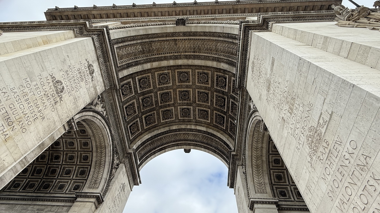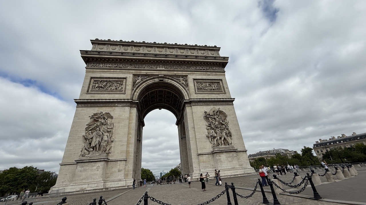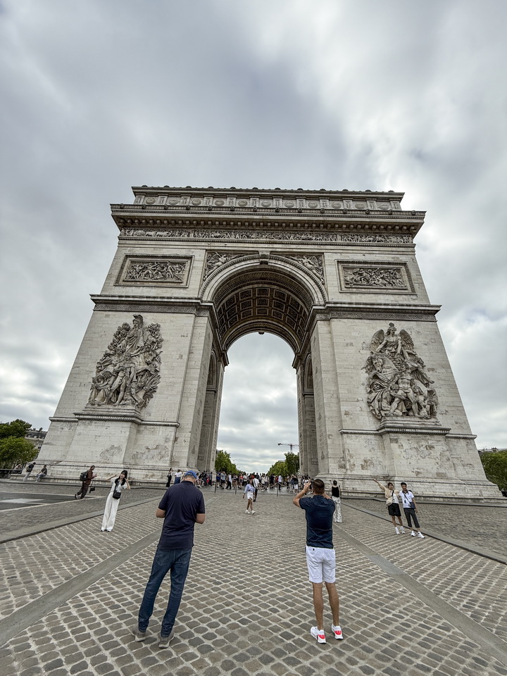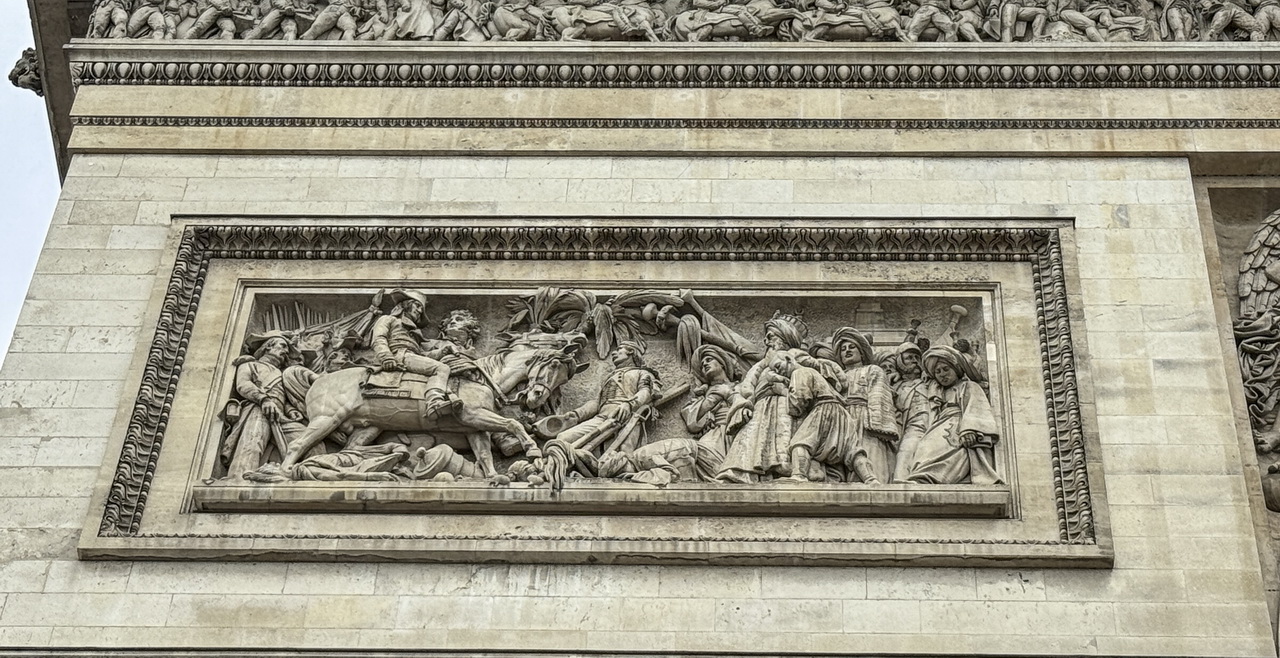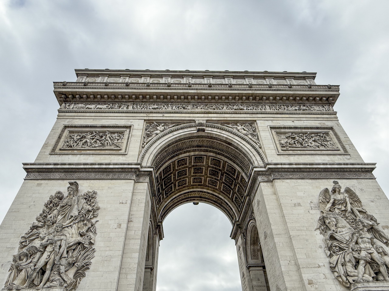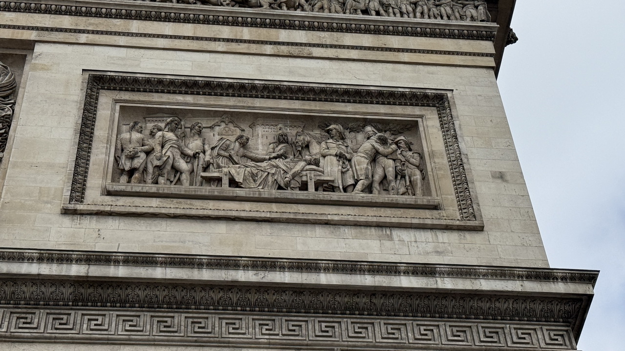 今天是星期日,開始使用Navigo 週票並不划算,我們採用逐次買單程票方式搭車。第一站是凱旋門,開始使用六天期的博物館通票。法國最具代表性的地標之一,拿破崙為紀念戰役勝利而建。高50公尺的門,具有建築美學,也結合了歷史的壯觀建築。在廣場四週巡禮,看看各面牆上的雕刻,仰望雄偉的建築。使用博物館通票,登上凱旋門頂端,俯瞰從凱旋門輻射出去的12條大街,整個巴黎市區都在視野內。
