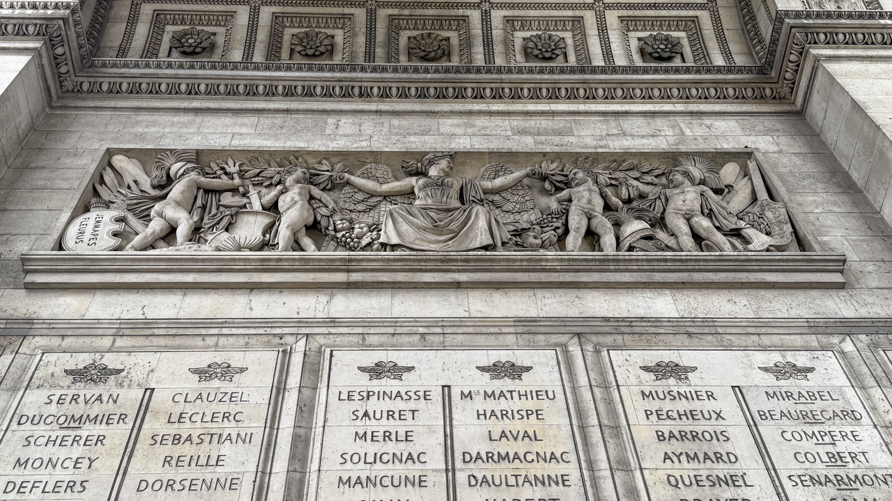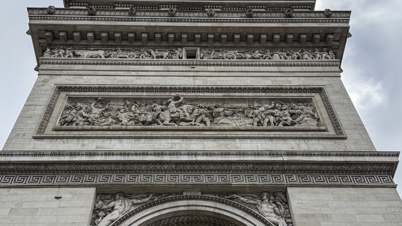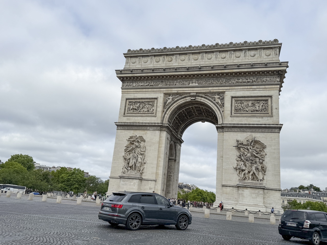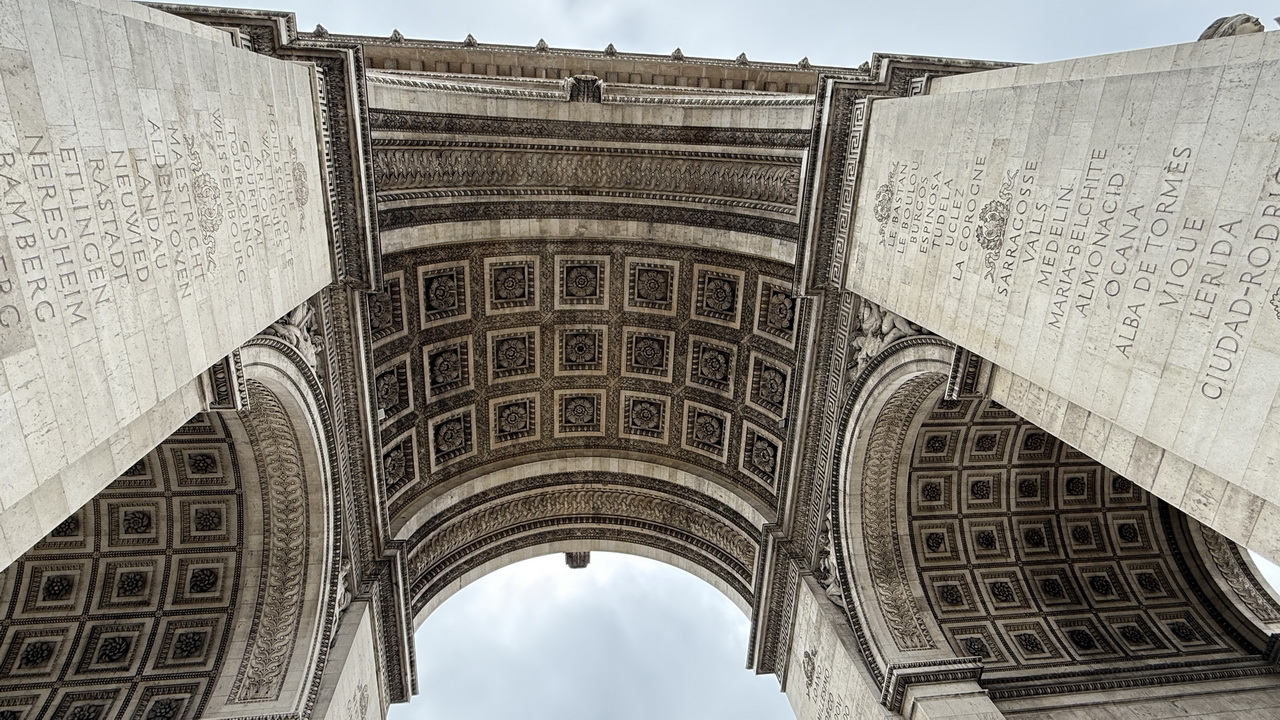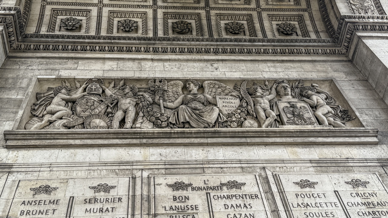 今天是星期日,開始使用Navigo 週票並不划算,我們採用逐次買單程票方式搭車。第一站是凱旋門,開始使用六天期的博物館通票。法國最具代表性的地標之一,拿破崙為紀念戰役勝利而建。高50公尺的門,具有建築美學,也結合了歷史的壯觀建築。在廣場四週巡禮,看看各面牆上的雕刻,仰望雄偉的建築。使用博物館通票,登上凱旋門頂端,俯瞰從凱旋門輻射出去的12條大街,整個巴黎市區都在視野內。