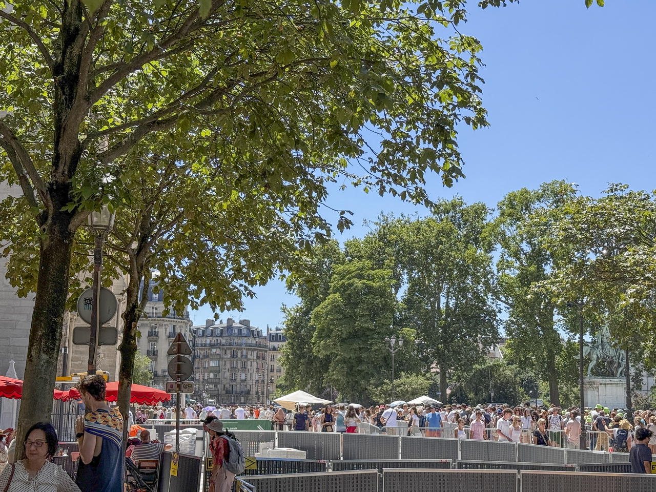 今天是星期日,不適合安排去最熱門的羅浮宮。先到巴黎聖母院看看,走在聖母院附近的人行道,已經感受到朝聖的人潮。到了廣場,果然排滿了準備進入教堂的人龍。在聖母院外圍逛逛後,決定明天早上再來,不用在大太陽底下排隊等待。