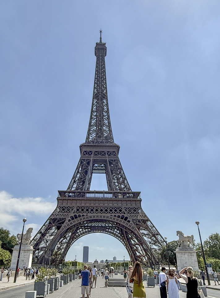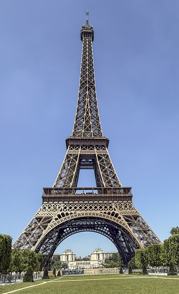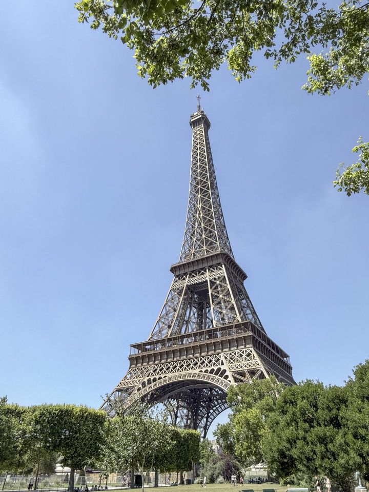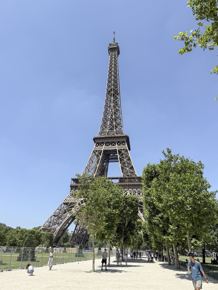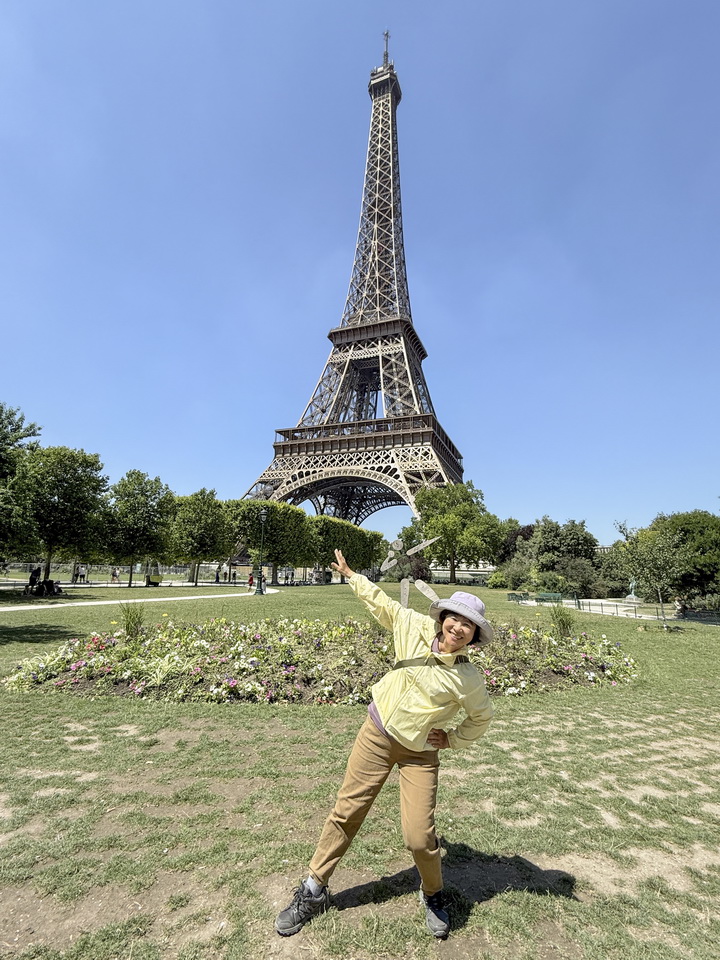 巴黎市區地標之一的艾菲爾鐵塔,完成於1889年的世界博覽會,高312公尺。自從來到巴黎的第一天下午,就已經在住宿處附近的塞納河橋上,遠看它和在河中小島上的勝利女神雕像。這個存在心裡已經有好幾十年的印象,今天才到鐵塔旁來看個清楚。