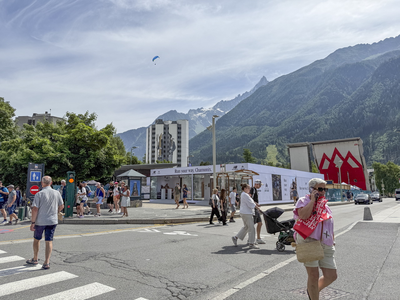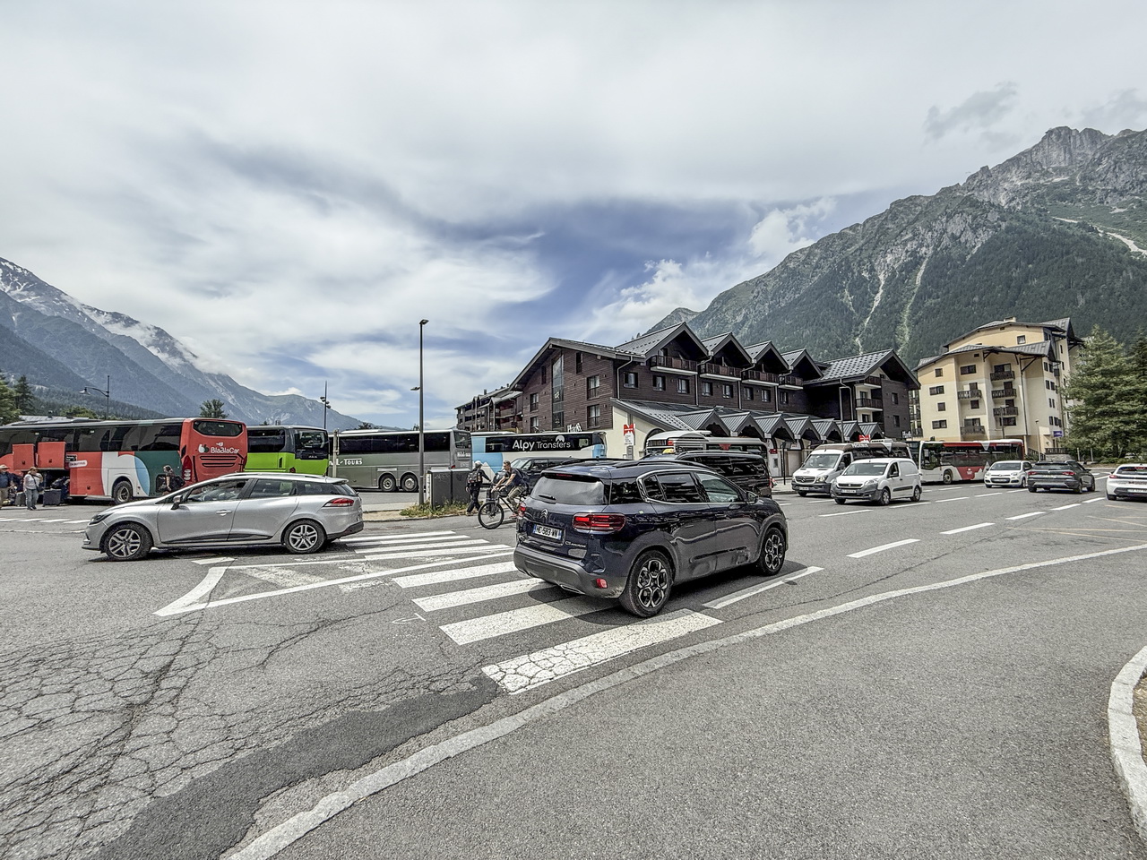 回到霞慕尼市區午餐,前往公車站(Chamonix Sud)預購明天前往日內瓦巴士站(Geneva Bus Station)的巴士車票。沒想到車站中午是休息的,候車室有一台購票機,前一人沒完成機器購票。換我們來試試,果然也沒辦法完成。只能當成是機器不賣票給外國人,沒辦法只能等。在漫長的等待中,陸續有人來使用機器買票,竟然沒有一個人買成,這是擺設用的嗎?售票口的窗簾打開,開始人工售票,終於買到想要的班次。