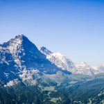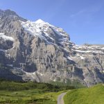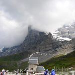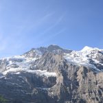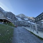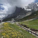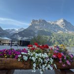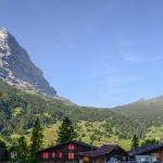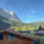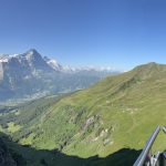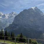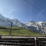 我們比預定搭少女峰火車的時間早到了許多,走到車站外,旁邊就是陡峭的艾格峰北壁,對面則是下午要走的小夏戴克步道。看著美麗的山景,等待的時間很快就過去了。