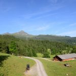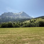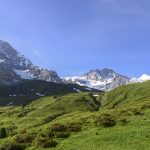 接下來是表定的四十分鐘,從艾格冰河車站健行到小夏戴克火車站。出發後全程都是下坡,起點就已經可遠望到小夏戴克,路徑十分清楚,沿途也都有指標,不必過度擔心走錯路。向小夏戴克望去,是一大片坡度和緩的山坡草原,難怪它是冬季最熱門的滑雪勝地。晴天走在野花盛開,一望無際的美麗草原上,舒服極了。